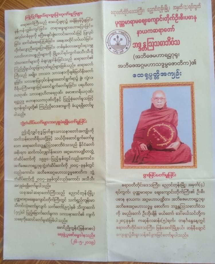တ ၊အဘိဓဇအဂ္ဂမဟာသဒ္ဓမ္မဇောတိကအဘိဓဇမဟာရဋ္ဌဂုရု ဘဒ္ဒန္တသြသဓာဘိ