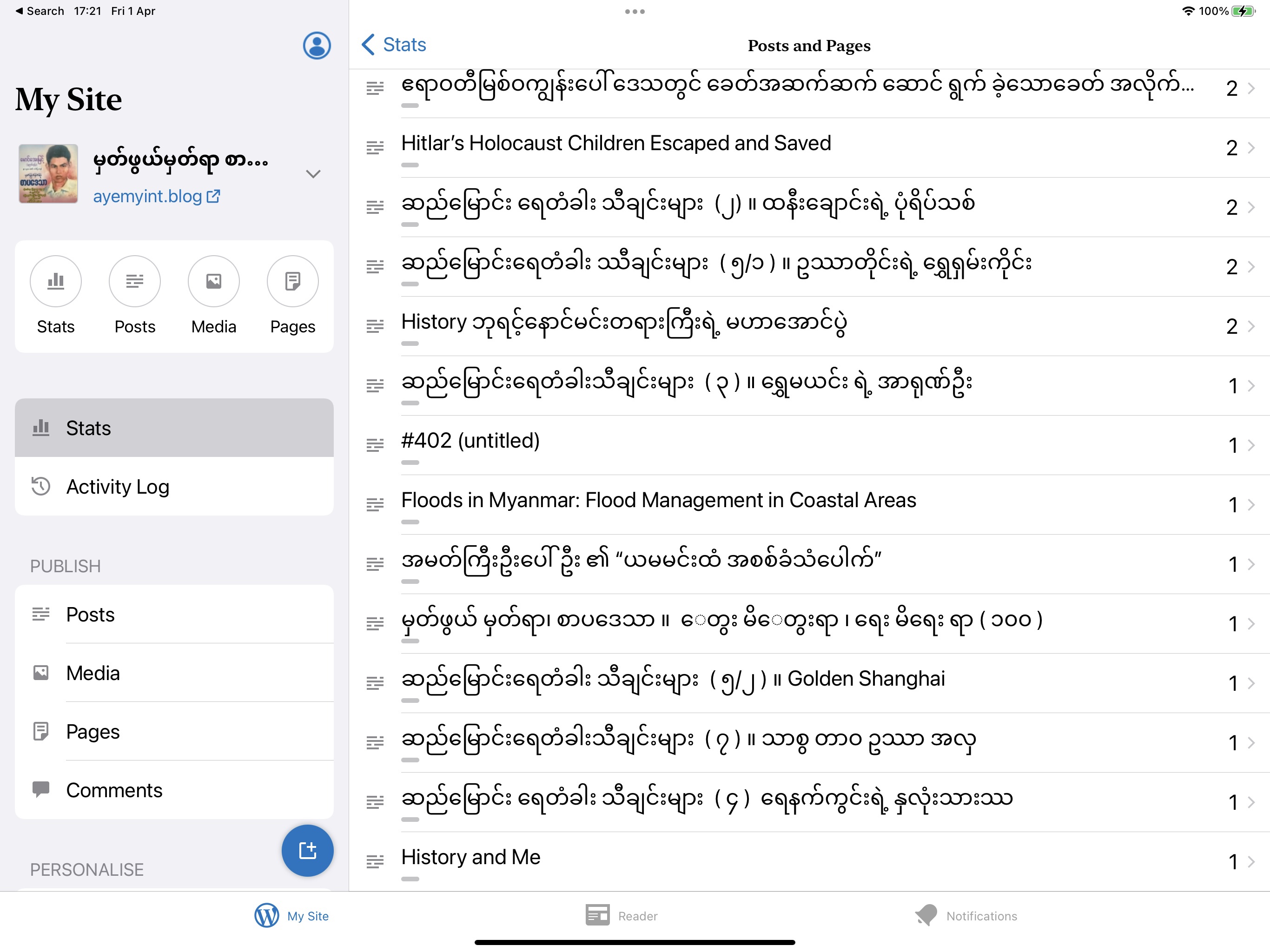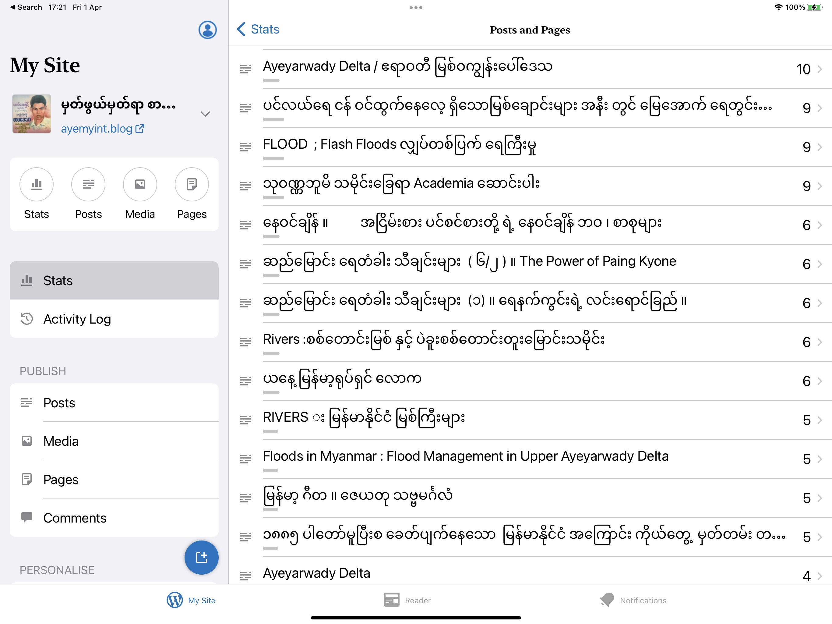 ကျွန် တော့် website ayemyint.com ကြည့်ကြ တဲ့ ကမ္ဘာ့နိုင်ငံ ေ တွ ကစာဖတ်ပရိသတ် ေ တွ ကို မြင်နေရပါပြီ. WordPress .com က လုပ် ပေး တဲ့ အချက်အလက် တွေ အရ တစ်လအတွင်း မိမိ ဝက် ဆိုက် နှိပ် ကြည့် ကြ သူွေ တွ စာ ရင်းကိုလဲ ေ တွ့ လာ ရပါတယ် ။