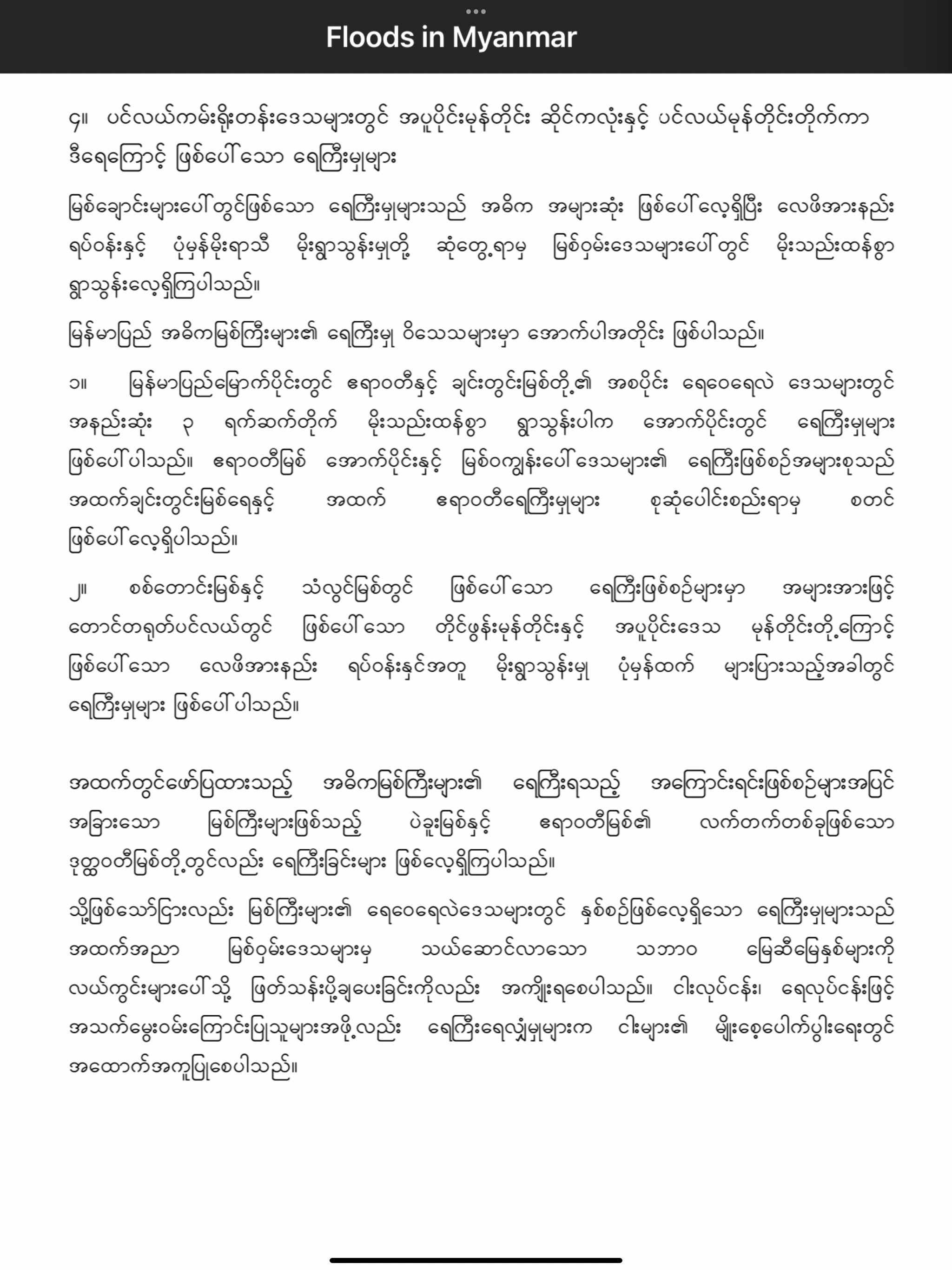 7 Apr 202222 Oct 2024 uamyint မြန်မာနိုင်ငံအတွင်း ရေကြီးမှုများ ( Floods in Myanmar) Click to share on Facebook (Opens in new window) Facebook Click to share on X (Opens in new window) X Click to share on LinkedIn (Opens in new window) LinkedIn Click to share on Telegram (Opens in new window) Telegram More Click to share on Tumblr (Opens in new window) Tumblr Like Loading... Related