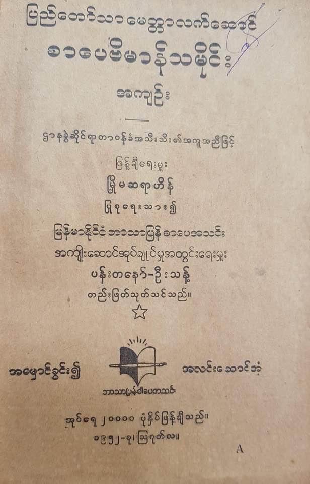 ဆည်မြောင်းက ဆရာသမား ၊ဝါရင့်အင်ဂျင်နီယာကြီး ၊ဒု/ညွန်ကြားရေးမှူးချုပ်(ငြိမ်း) ဦးဇော်ဝင်း(ဇလ) စုဆောင်းထားတဲ့ စာပေဗိမာန် သမိုင်းအကျဉ်း ၊စာအုပ် ။