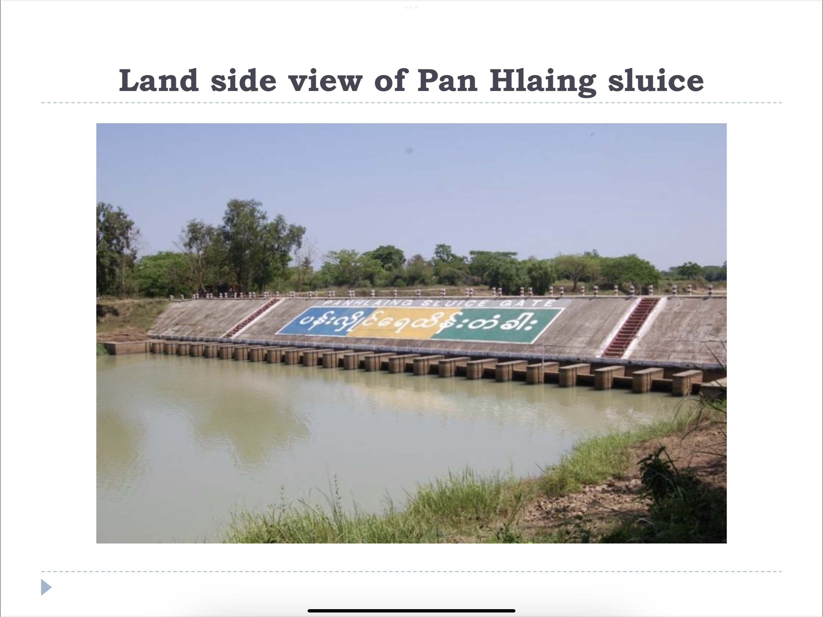 စိုက်ပျိုးရေးအတွက် ညောင်တုန်း ကျွန်းအတွင်းသို့ ဘက်စုံသုံး ရေတံခါး ကြီး များမှတစ်ဆင့် ရေသွင်းလုပ်ငန်းများအကြောင်းဖြစ်ပါသည် ။