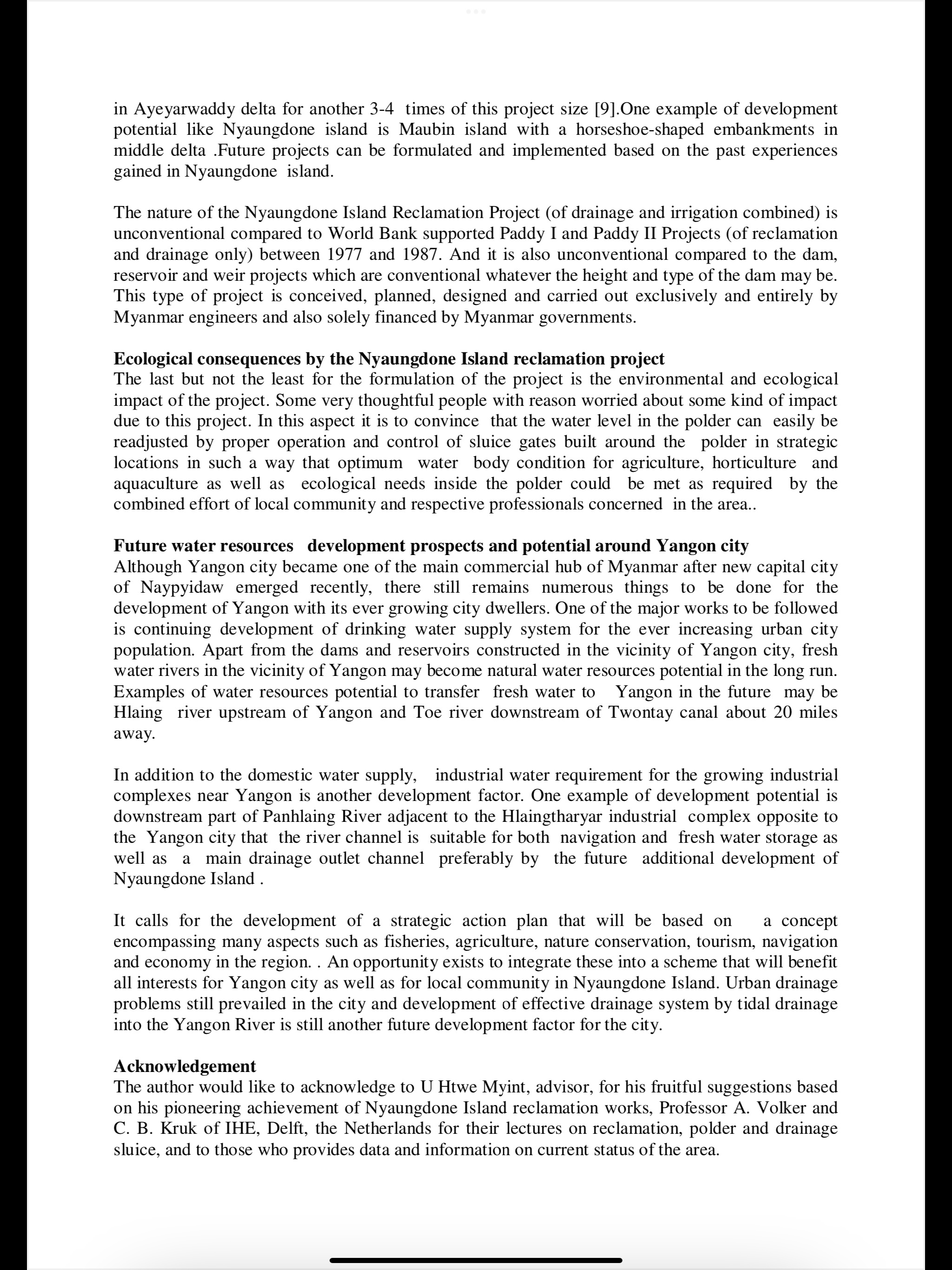 A Case Study paper on Nyaungdone Island Reclamation Project of Myanmar , submitted at SINGAPORE International Water Week held in SINGAPORE on 4-8 July ,2011
