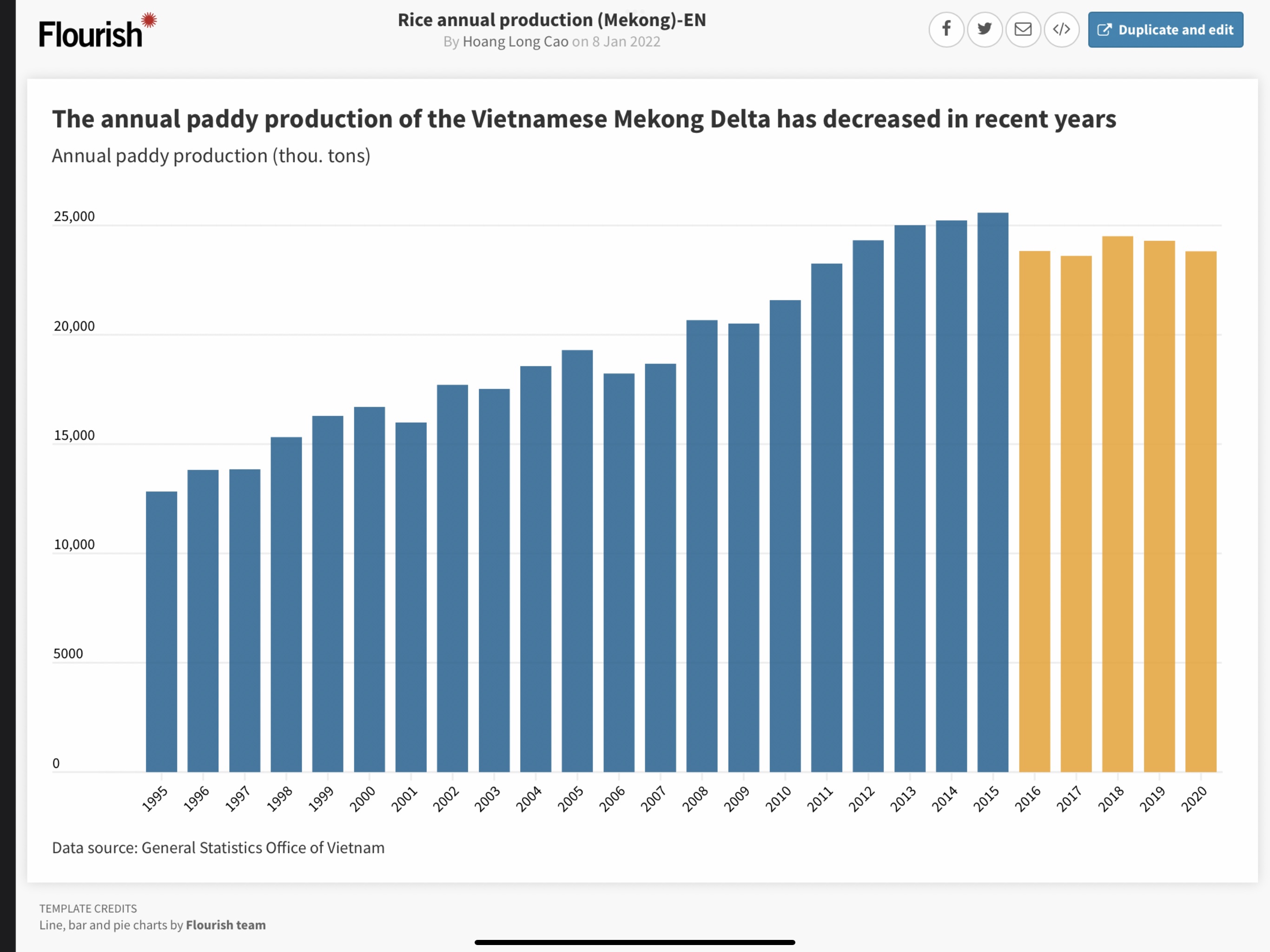 The fertile Mekong Delta is a crucial region for Vietnam’s continued food and economic security but a variety of factors have wreaked havoc on how Vietnam grows food, catches fish and ultimately survives a radically changing environment. Here, reporters analyze 20 years of data on agricultural, hydropower, saltwater intrusion and rainfall patterns in Vietnam’s Mekong Delta (VMD) to explain where the country’s food comes from, why it’s disappearing and what can be done about it.