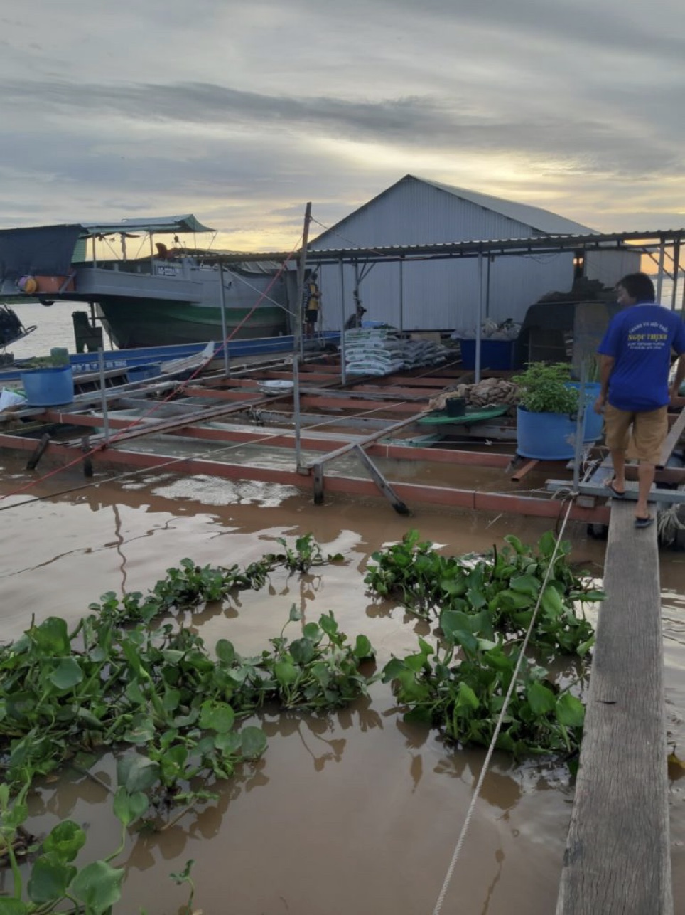 Phan Chi Hieu, commonly known as Muoi Diep, has been raising fish in cages for many years at Ong Ho Island, My Hoa Hung Commune, Long Xuyen City, An Giang Province. Previously, Muoi Diep’s family had 20 fish cages, each year harvesting 400 tons, mainly for export because of the area’s proximity to Cambodia. By October 2021, he only had 6 fish cages left and caught 70% less fish.