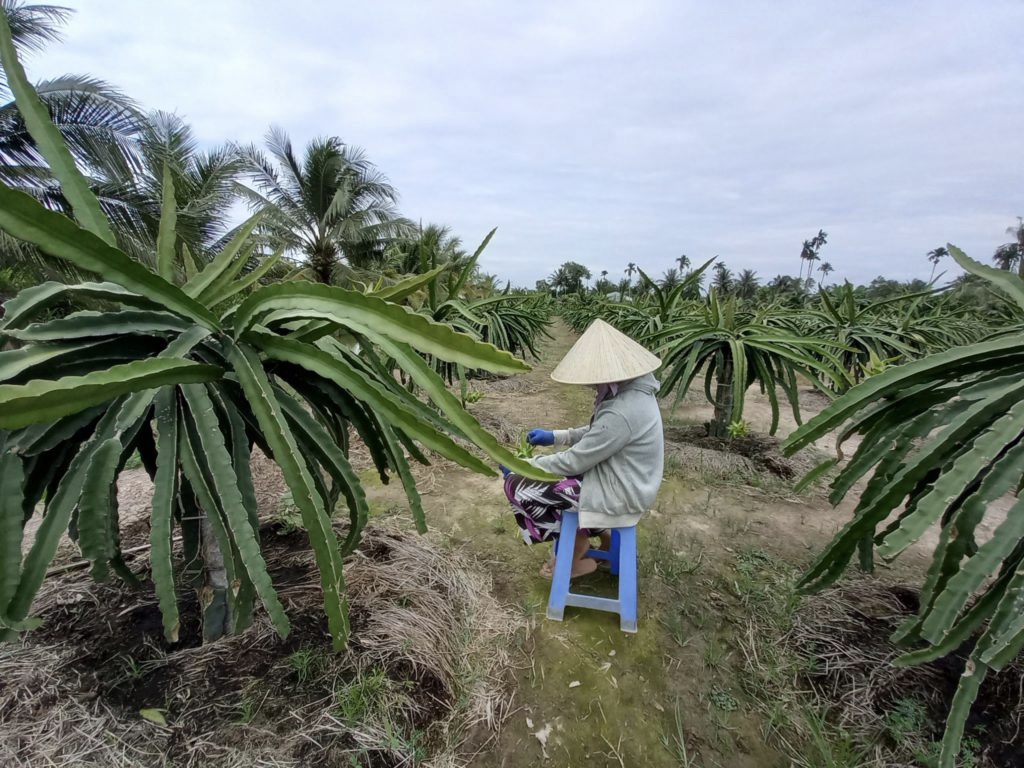 Many areas where rice growing was inefficient have been converted to grow more salt- and drought-tolerant crops, such as dragon fruit, coconut, lotus, areca, and watermelon.