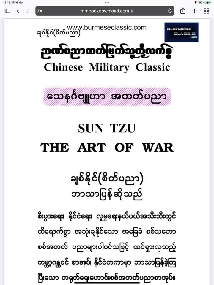 ( ရှေးတရုတ် ပညာရှီ Sun Tzu ရေးခဲ့တဲ့ Art of War စစ်သေနင်္ဂ ဗျဟာ နည်းပညာ ၊