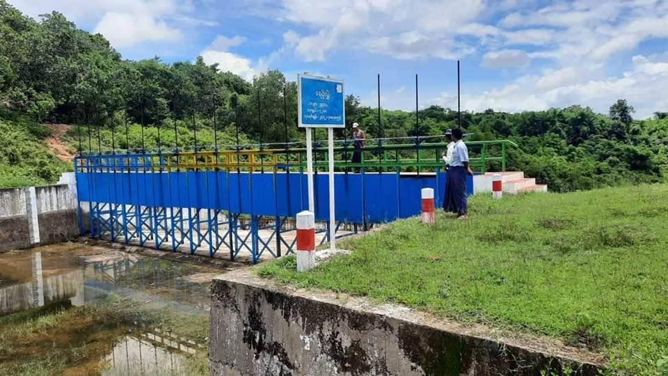 Slide door gate ကို ထူးထူးခြားခြား ဆေးသုတ်ထားတာပါ။ ။ ပုံမှန် Gated Weir ရေတံခါးတပ် ရေပိုလွှဲတွေလို ၊ Gated Spill way အဖြစ် လုပ်ထားတာကို တွေ့ရပါတယ် ၊