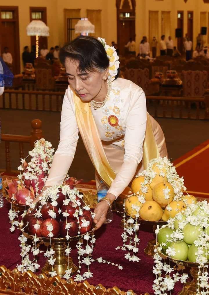 .နိုင့်ငံခေါင်းဆောင် ဆိုတာ သာမန်ပြည်သူလို သီလ မလုံ တရား မရှိ နေချင်သလို နေ မရပါ။ ကြံဖန်ပြောရရင် ဒေါ်စုဟာ လူမျိုးခြားကို လက်ထပ်ခဲ့ခြင်းက လွဲလို့ ဘာမှ အပြစ်ပြောစရာ မရှိအောင် ဘ၀တလျှောက်လုံး နေထိုင်ခဲ့သူ ဖြစ်ခြင်း ၊ (လူမျိုးခြား ဆိုပေမဲ့ ဒေါ်စုအား ချစ်ခင်လေးစား တန်ဘိုးထား နားလည်ပေးတတ်တဲ့ ပညာရှိတဲ့ မိမိနှင့် သားများ ကိုပါ ဗုဒဘာသာသို့ ပြောင်းလဲခဲ့နိုင်တဲ့ ခင်ပွန်းကောင်း ဖြစ်ပါတယ်။) အိမ်တွင်း အကျဉ်းကျစဉ် ဝိပသနာ တရားအားထုတ်မှုကို မပြတ် လေ့ကျင့်ပွားများခဲ့ခြင်း ဆရာတော်ကြီးများရဲ့ အဆုံးအမကို မပြတ်ခံယူခြင်း တို့ကြောင့် ထိုအရည်အချင်း ဒေါ်စုမှာ ၁၀၀% ရှိပြန်ပါတယ်။
