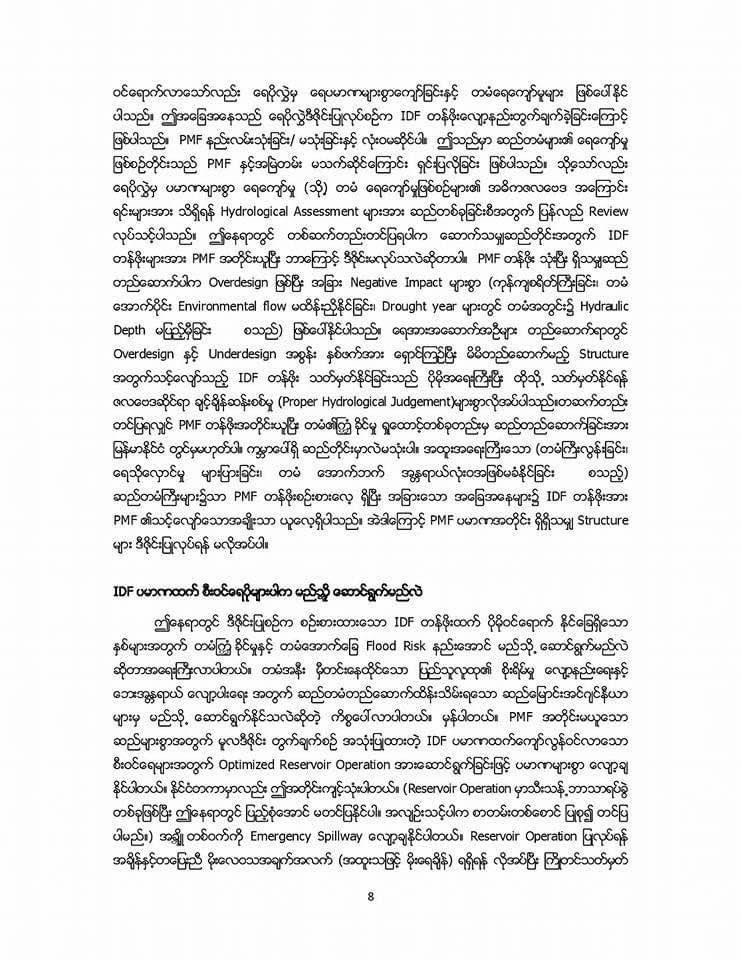 အခုတင်လိုက်တဲ့ Article ကမနှစ်ကရေကြီးချိန်တုန်းက တမံကြီးတချို့ရေပိုလွှဲမှရေကျော်ချိန် ပြည်သူလူထုနဲ့ကိုယ့်ဆည်မြောင်းဝန်ထမ်းအချင်းချင်းကိုပါ Spillway design အတွက် IDF အသုံးချမှုအကြောင်းသိစေချင်တဲ့အတွက် သတင်းစာတစောင်စောင်မှာထည့်မယ်ဆိုပြီးဆောင်းပါးပုံစံရေးထားတာပါ အခုထိမထည့်ဖြစ်သေးလို့ လက်ရှိအခြေအနေနဲ့ကိုက်ညီမယ်ထင်လို့ post တင်ပေးလိုက်ပါတယ် အတိုင်းအတာတခု knowledge ရမယ်လို့ မျှော်လင့်ပါတယ် feedback များပြန်ပေးကြပါဦး လိုအပ်တာတွေဖြည့်စွက်ပြီးသင့်တော်တဲ့အချိန်ဆောင်းပါးထည့်ချင်လိုပါ