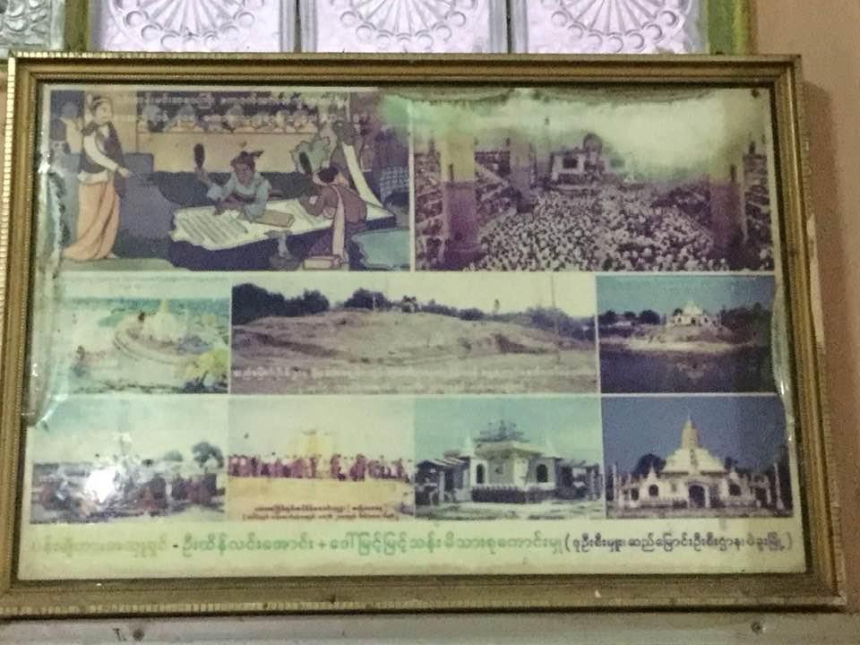 The pagoda was a reconstructed new one ( with inner Hlaing rooms like Ananda of Bagan ) ,named as ” Thi Ri Min Ga Lar Su Taung Pyayt Zay Di Taw ” on a previous site of a damaged ancient stupa pagoda seemingly dating back to the old Hantharwaddy Dynasty of king Dhamazaydi period . This king, one of its kind , was a devoted Buddhist in our history of Buddhism in Myanmar .
