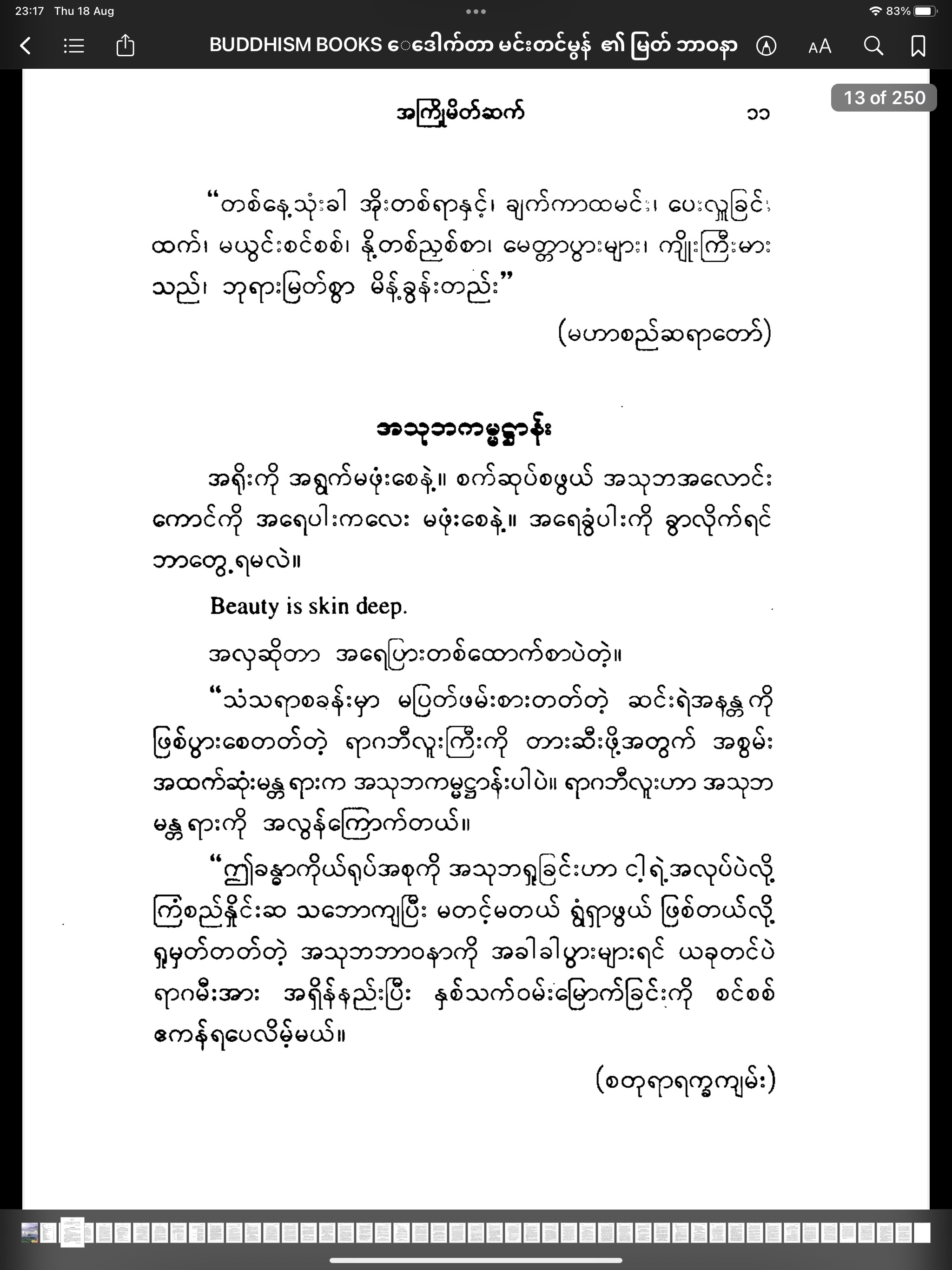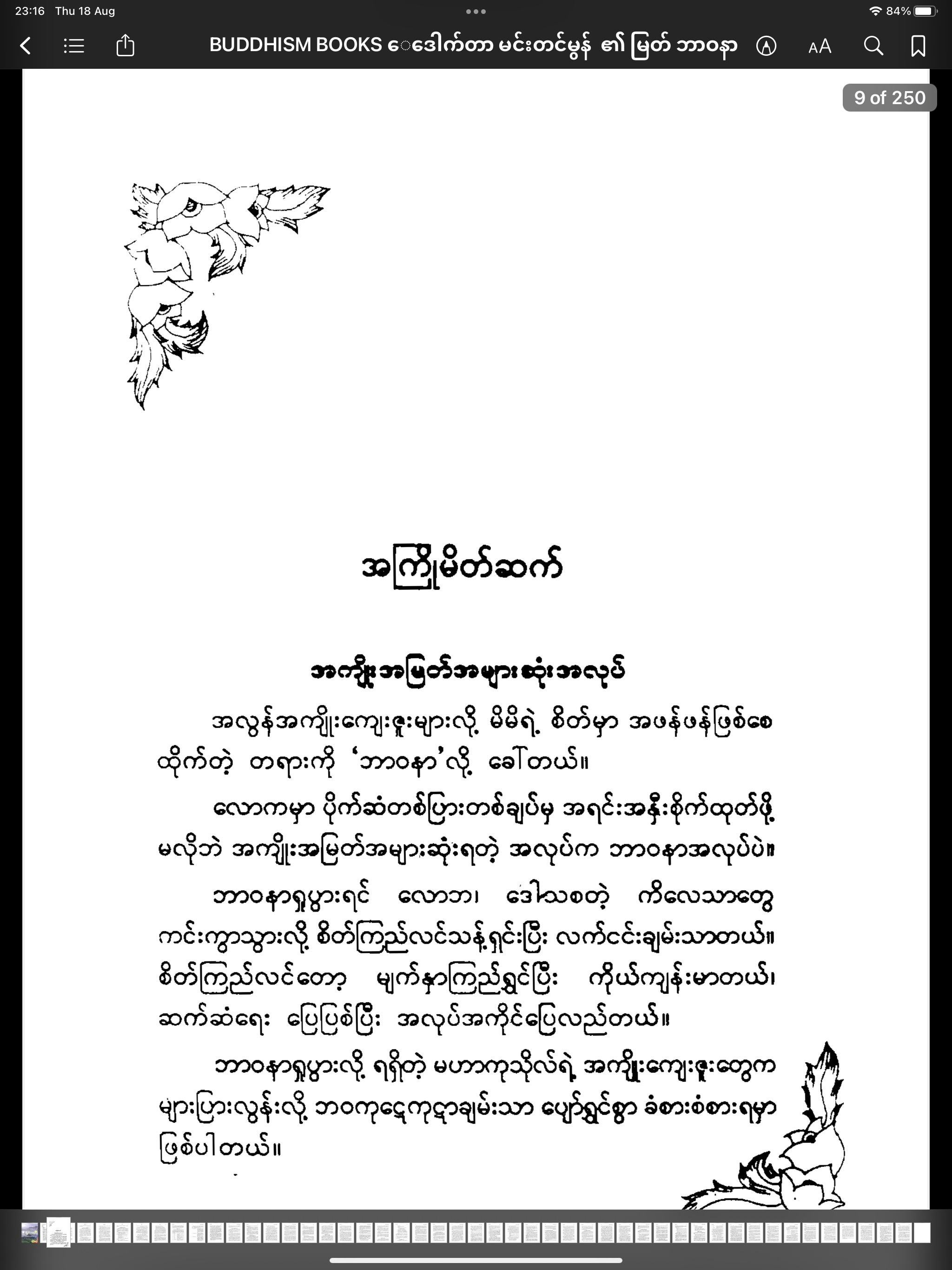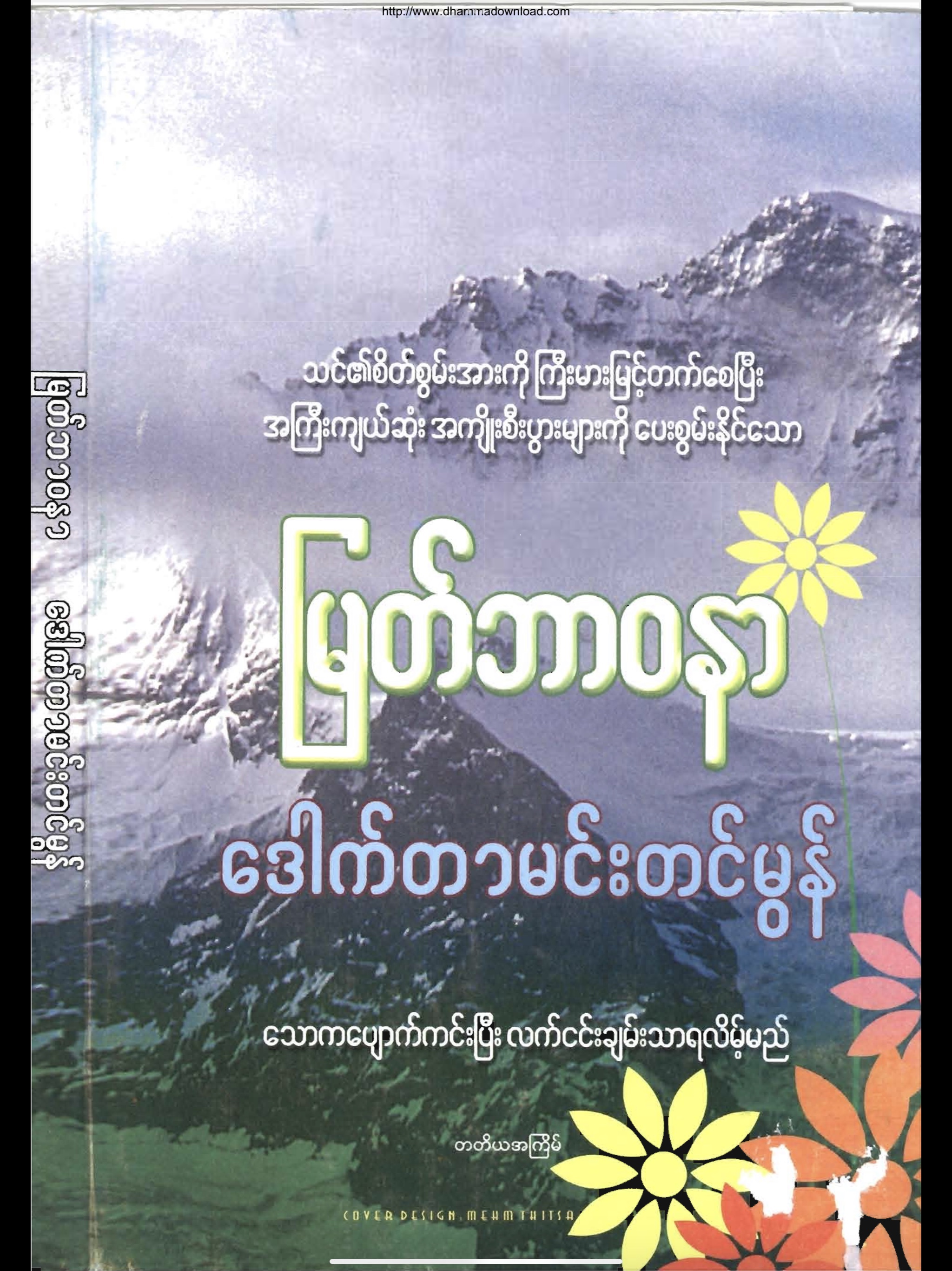 မိတ် ဆွေ ကြီး၊ ဘူမိ ဦးစိုမြငိ့အောင် ရှာတွေ့တဲ့ ဒေါက်တာမင်းတင်မွန် ရဲ့ ဘာဝနာ စာအုပ် ကို လိုက် ရှာ လိုက်တာ သွား တွေ့တယ် ။ဖတ်သင့်တယ် ။ကောင်းတယ် ။ဖတ်ပြီး လေ့လာ ကျင့် ကြံ ဘို့ ဘဲ လိုနေပါတော့တယ် ။ ကျေးဇူးတင်ရပါတယ် ခင်ဗျား ။