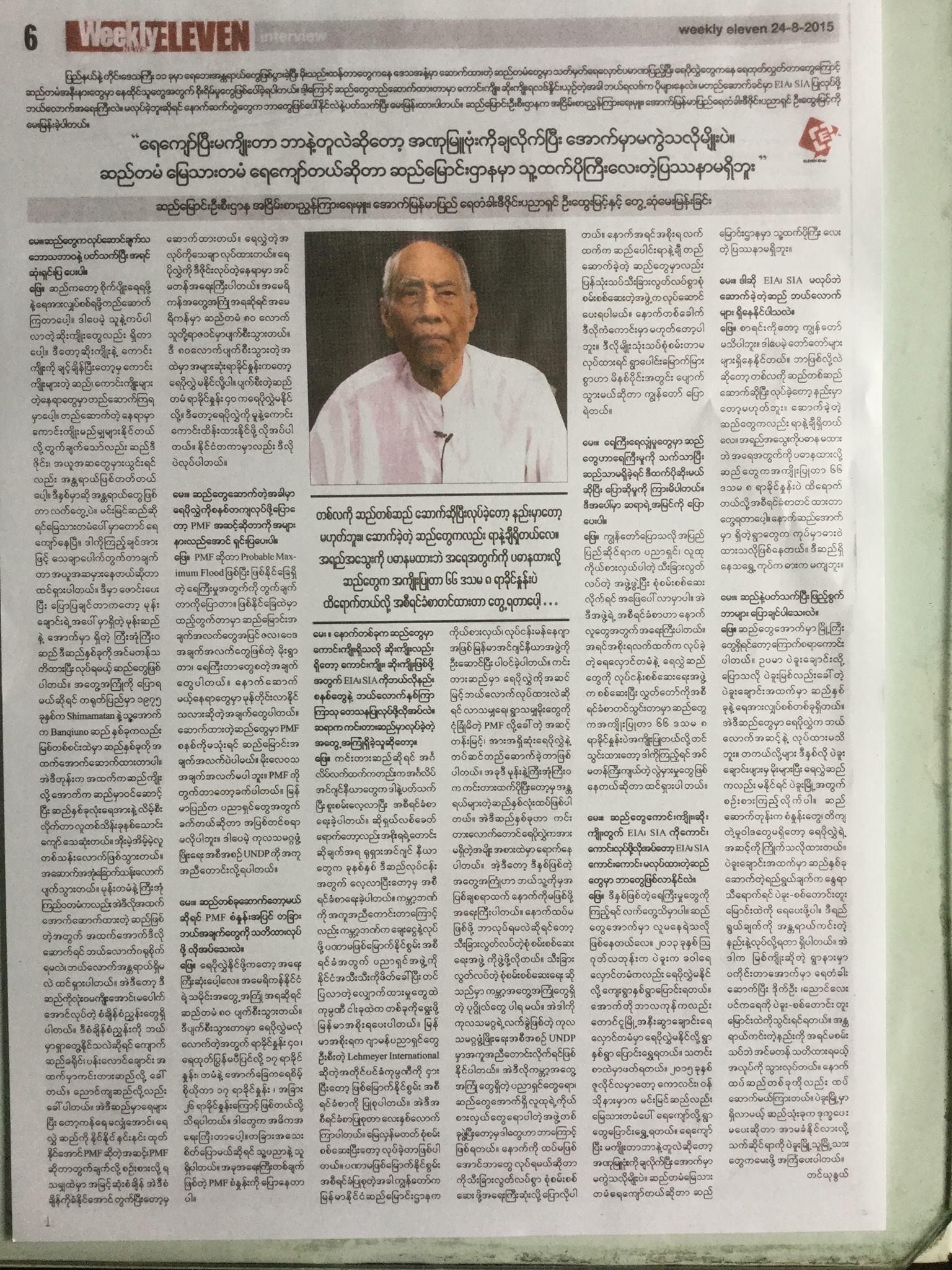 ၂၀၁၅ ခုနှစ်မိုးရာသီကာလအတွင်း၊ နိုင်ငံရဲ့ အထက်မြန်မာပြည် စစ်ကိုင်းတိုင်းအတွင်း မကြုံစဘူး ရေကြီး ဖြစ်စဉ် တွေ ဖြစ်သွားပြီးနောက် မှာ မီဒီယာ သတင်းဌာန တစ်ခုက ၊ အတွေ့အကြုံများတဲ့ ပင်စင်စား ဝါရင့် ဆည် မြောင်းအင်ဂျင်နီယာကြီးတစ်ဦး ကို ဆည် မြောင်းမှာ ဆည် တမံများဘေးကင်းလုံခြုံရေး အစီအမံများ အကြောင်း ကို အများ ပြည်သူတွေ သိရအောင် အင်တာဗျူး တစ်ခု လုပ်ခဲဲ့ပါတယ် ။