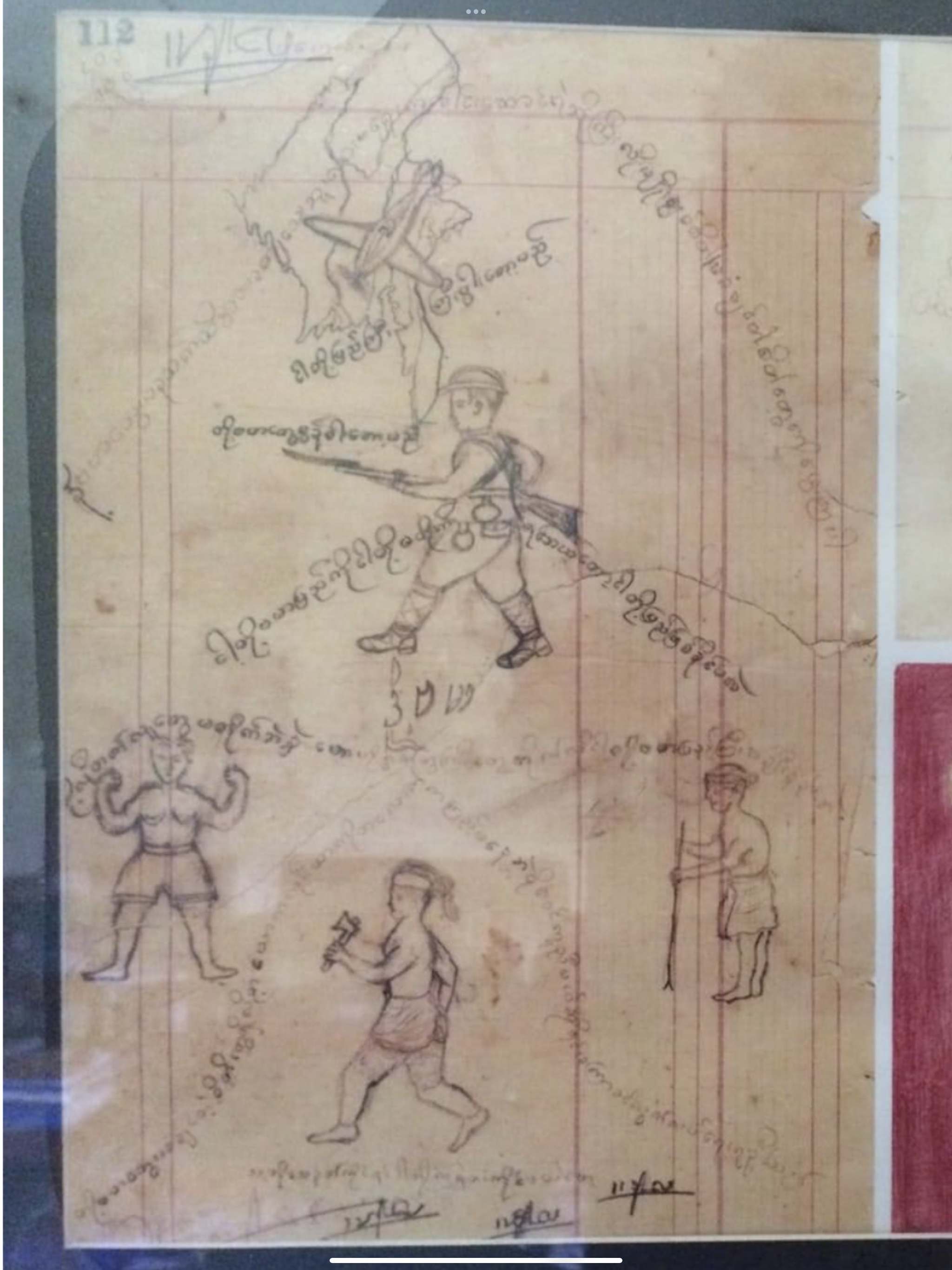 အဖေ့ပုံ ပန်းချီနဲ့အတူ ၊ လွတ်လပ်ရေး မရ မီ အချိန် ၊ မြန်မာပြည် လွတ်လပ်ရေးရဘို့ ၊ အင်္ဂလိပ် နယ် ချဲ့ ရန် သူ ေ တွ ကို တစ်နိုငံလုံး ရုန်းကန် ပုန်ကန် လှုပ် ရှား ေ န ခဲ့ ကြ စဉ် ကာ လ ေ တွ က ၊အ ေ ဖ လူငယ် ဘဝ။ခ လေး အ ေ တွး နဲ့ ၊ စိတ်ကူး ပုံ ေ ဖါ် ေ ရး ခြစ် ထားခဲ့တဲ့အ ဖေ့ ငယ် လက် ရာ ပန်းချီ ကားလေး လဲ ရှိ နေပါတယ် ။ ကျွ န် ေတာ့် အသက် ထက်ပင် သက်တန်း ရှည် လျား တဲ့ အဖေ့ ရဲ့ ငယ်လက် ရာ ပန်းချီ ပုံ ေ လးပါ ။