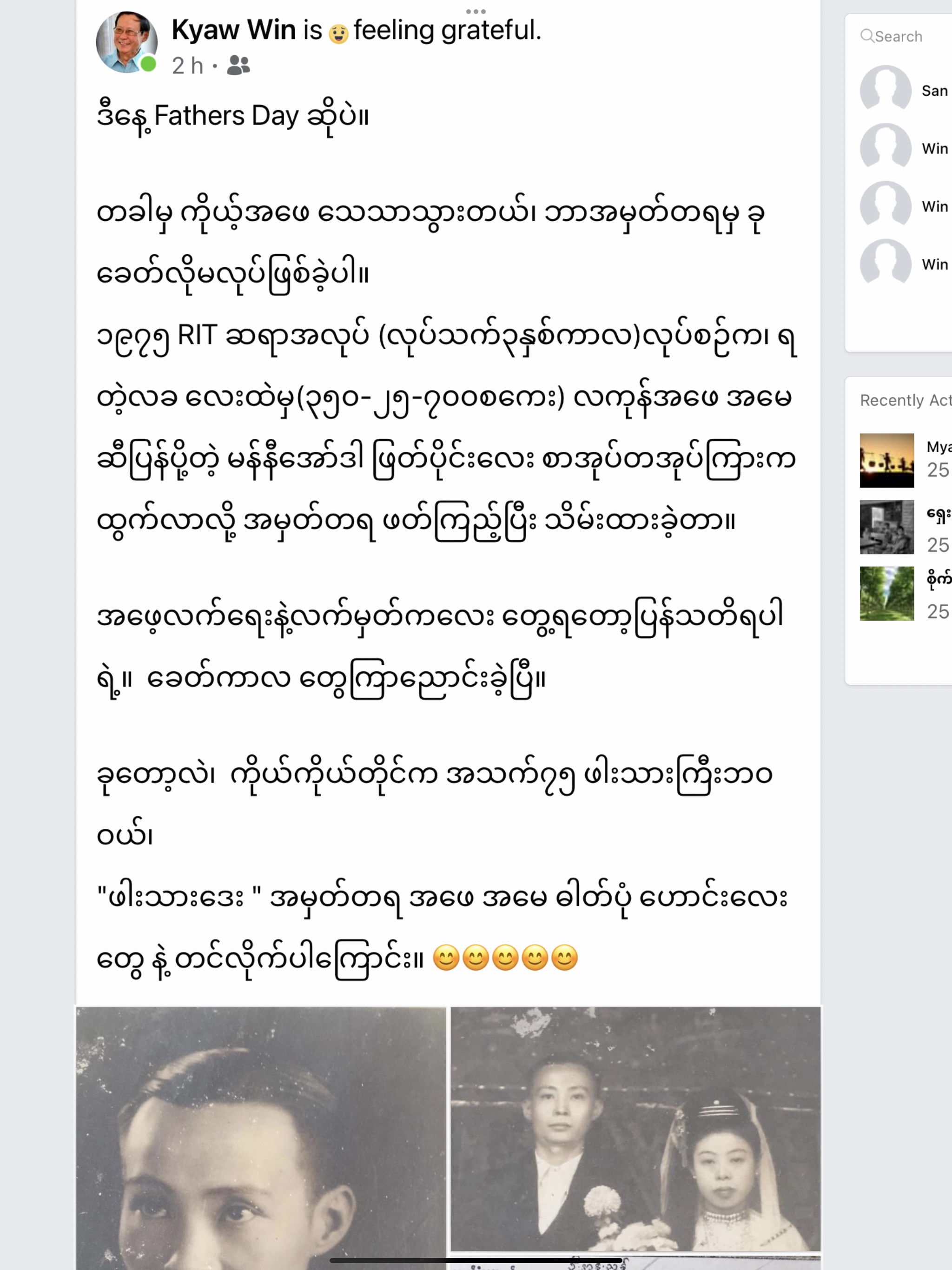 “ဖါးသားဒေး ” အမှတ်တရ အဖေ အမေ ဓါတ်ပုံ ဟောင်းလေးတွေ နဲ့ တင်လိုက်ပါကြောင်း။ 😊😊😊😊😊