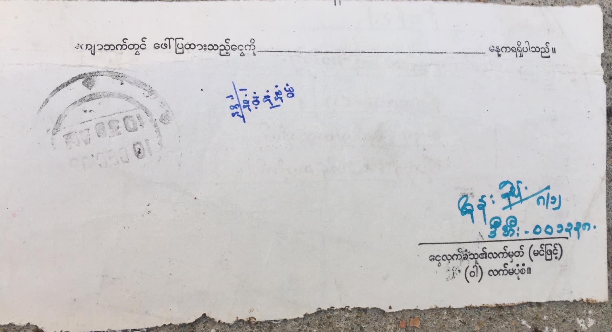 ၁၉၇၅ RIT ဆရာအလုပ် (လုပ်သက်၃နှစ်ကာလ)လုပ်စဉ်က၊ ရတဲ့လခ လေးထဲမှ(၃၅၀-၂၅-၇၀၀စကေး) လကုန်အဖေ အမေ ဆီပြန်ပို့တဲ့ မန်နီအော်ဒါ ဖြတ်ပိုင်းလေး စာအုပ်တအုပ်ကြားက ထွက်လာလို့ အမှတ်တရ ဖတ်ကြည့်ပြီး သိမ်းထားခဲ့တာ။