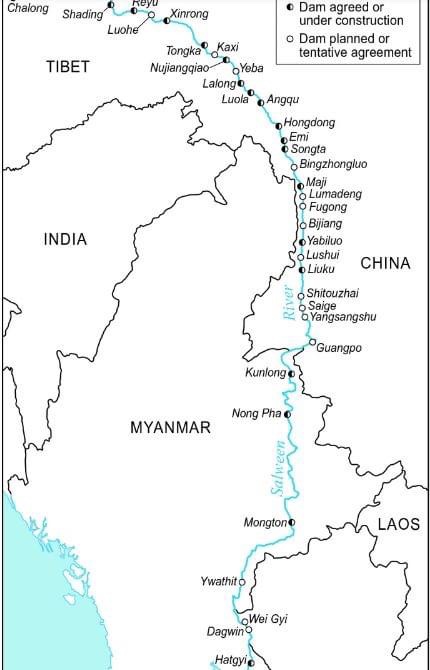 ပူးတွဲပုံအရ သံလွင်မြစ်ကြောင်းပေါ် ဆောက်ရန် ရာထားသည့် ရေကာတာများတွင် ပြည်တွင်း၌ ဆောက်ဖို့ ရာထားသည်က နည်းနည်း၊ တရုတ်နိုင်ငံထဲတွင် ဆောက်ခဲ့ ဆောက်မည့် ရေကာတာက အတော်များသည်ကို တွေ့ရသည်။ ဆောက်ပြီးက နှစ်ခု၊ ဆောက်ဖို့ရာထားသည်က ၃၀ ခန့် ရှိနေသည်။ ၂၀၁၉ ခုနှစ်က ထွက်ပေါ်ခဲ့သည့် စာတမ်းပါပုံ ဖြစ်၍ လက်ရှိအခြေအနေကို မသိပါ။