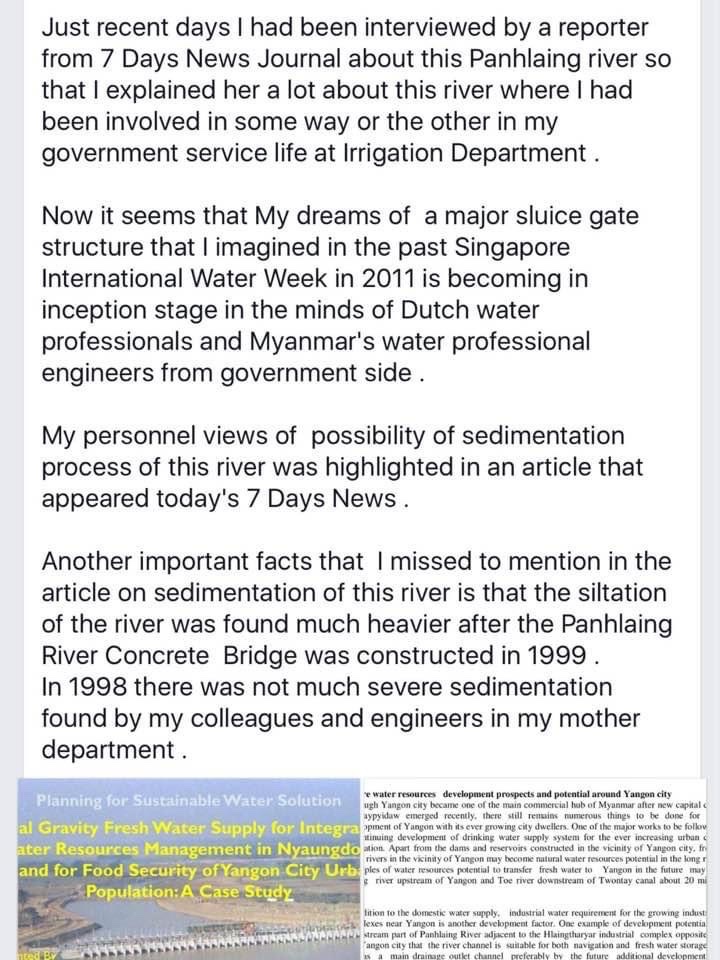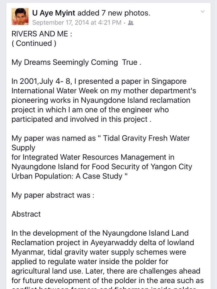 Facebook ပေါ် မှာ ( September 17, 2014 ) နေ့က ရေးသား တင်ပြခဲ့တဲ့ Rivers and Me ဆောင်းပါး ၊