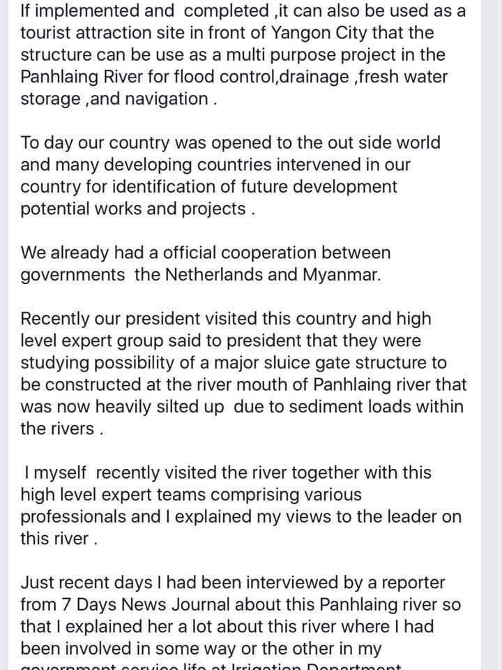ပေါင်းဆောင် ရွက် နေဆဲ မှာ ၊ ခေတ်ပြောင်းသွား လို့ နယ်သာလန်မြန်မာ ပူးပေါင်းဆောင်ရွက် နေခဲ့ကြ သော လုပ်ငန်းများ ထဲမှ ရပ် ဆိုင်းသွားခဲ့သော ဧရာဝတီမြစ်ဝကျွန်းပေါ်ဒေသ အတွက် မဟာဗျူဟာ မြောက် ရေးဆွဲ နေဆဲ ဘက်စုံ ရေရေးရာ လုပ်ငန်း စီမံကိန်း ကြီးတစ်ခု လဲရှိသေး တယ်.