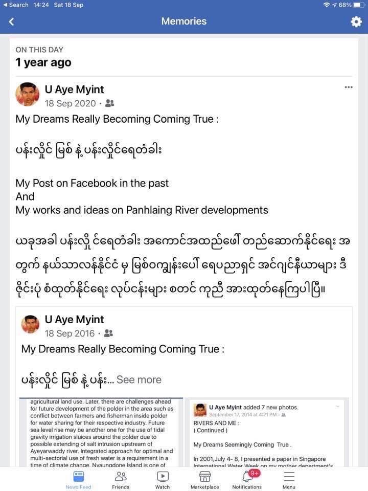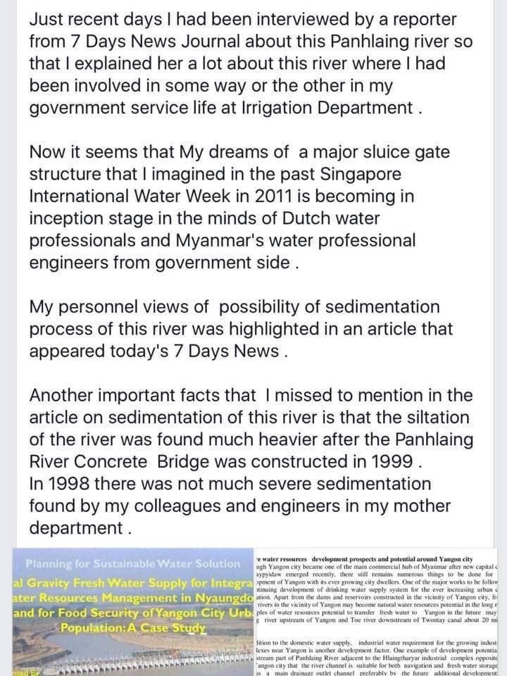 (၁ ) Facebook ပေါ် မှာ ရေးသားတင်ပြခဲ့တဲ့ Rivers and Me ဆောင်းပါး ၊