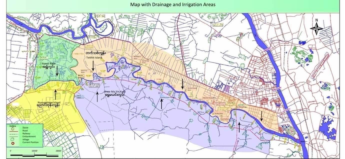 ပန်းလှ ိုင်မြစ်ဘေး ဝဲယာ မှာရှိနေတဲ့ ညောင်တုန်းကျွန်း / အရွှဲ ရေမြုပ်ကွင်း/ ထန်းတပင် တက်သစ်ကျွန်းကွင်း / တွံတေးနြိ ု့နယ်ထဲက ရှေ ွမယင်းကွင်းတွေ မှာ မိုးတွင်းရေကြီး ရေနစ်မြုပ်တာတွေမဖြစ်အောင် ကွင်းရေကိုရေနုတ်မြေင်းတွေတူး မြောင်းထိပ်မှာ ရေထုတ် ရေထိန်း ရေတံခါးတွေ တည် ဆောက်ခဲ့ကြ ပြီး ပန်းလှိုင် မြစ်ထဲကိုရေထုတ်ခဲ့ တာ အောင်မြင်ခဲ့တယ်