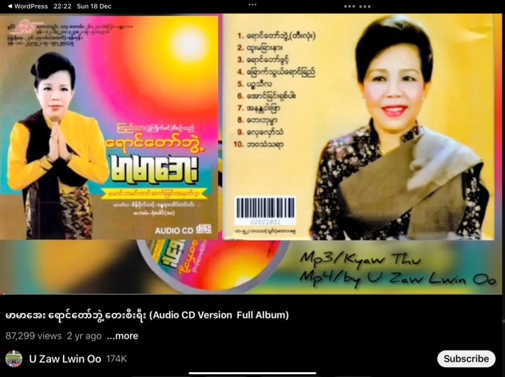 18 Dec 202215 Jul 2024 uamyint ဘာသာရေး သာသနာရေး ဓမ္မ တေးများ – ၁၂ ။ မာမာအေး ၏ ရောင် တော် ဘွဲ့ ဓမ္မတေးစု။ youtube.com/watch ဘာသာရေး သာသနာရေး ဓမ္မ တေးများ – ၁၂ မာမာအေး ၏ ရောင် တော် ဘွဲ့ ဓမ္မတေး Click to share on Facebook (Opens in new window) Facebook Click to share on X (Opens in new window) X Click to share on LinkedIn (Opens in new window) LinkedIn Click to share on Telegram (Opens in new window) Telegram More Click to share on Tumblr (Opens in new window) Tumblr Like Loading... Related