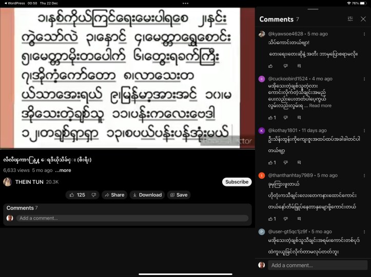 22 Dec 20227 Jun 2024 uamyint လီလီကြာညွန့် သီချင်းများ ။ မြန်မာ ဂ န္ဓဝင် အဆိုတော်ကြီးများ (၁) ။ youtube.com/watch ဿ Click to share on Facebook (Opens in new window) Facebook Click to share on X (Opens in new window) X Click to share on LinkedIn (Opens in new window) LinkedIn Click to share on Telegram (Opens in new window) Telegram More Click to share on Tumblr (Opens in new window) Tumblr Like Loading... Related
