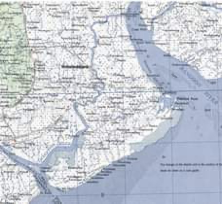 (အင်္ဂလိပ်ခေတ်စစ်သုံးမြေပုံထဲကသခွတ်ချောင်းနဲ့အခုခေတ်မြေပုံထဲကသခွတ်ချောင်း (ရန်ကုန်ကပင်လယ်ဝသို့အထွက်ညာဘက်ကချောင်းဟာသခွတ်ချောင်းဖြစ်ပါတယ်။)