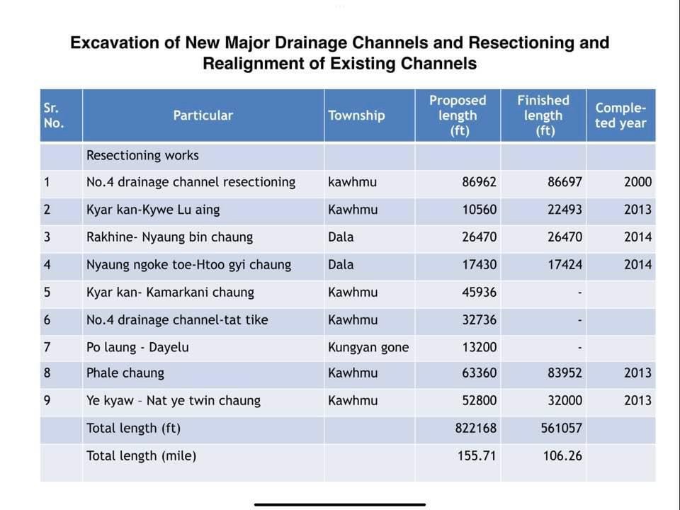 အေ ကြာင်း အမျိုးမျိုးေ ကြာင့် နိုင်ငံတကာ အကူအညီ ဖြင့် မဆောင်ရွက် နိုင် ခဲ့ သော်လည်းဆည် ေ မြာင်းဦး စီးဌာန သည် မိမိအစီ အစဉ်ဖြ င့် နိုင် သရေွ့ ဆောင်ရွက်ခဲ့ပါတယ်။