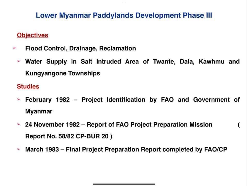 Lower Burma Paddy-land Development Projects in Ayeyarwady Delta of Myanmar