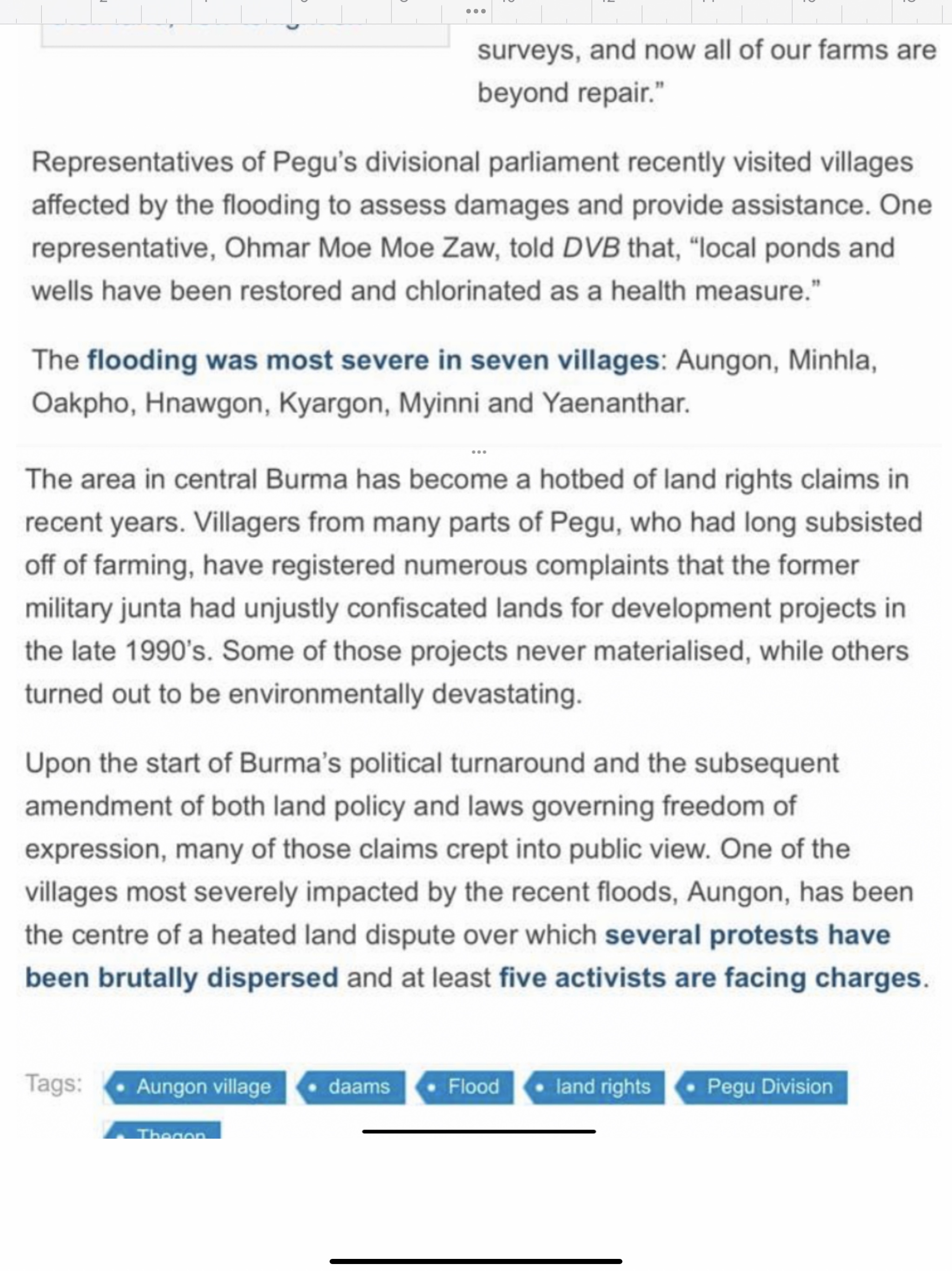 သတင်းတွေအရ ပဲခူးတိုင်းအနောက်ဘက်ခြမ်းက ဆည် ရေသောက် ဒေသ အဖျားမှာ ဖြစ်နေပုံရတယ်. ။