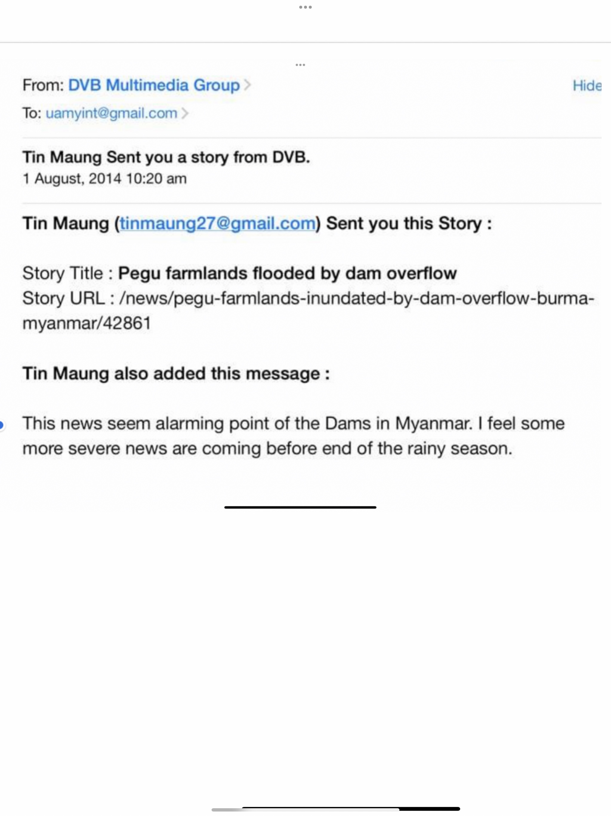 There was a news sent to me by my senior engineer U Tin Maung today .