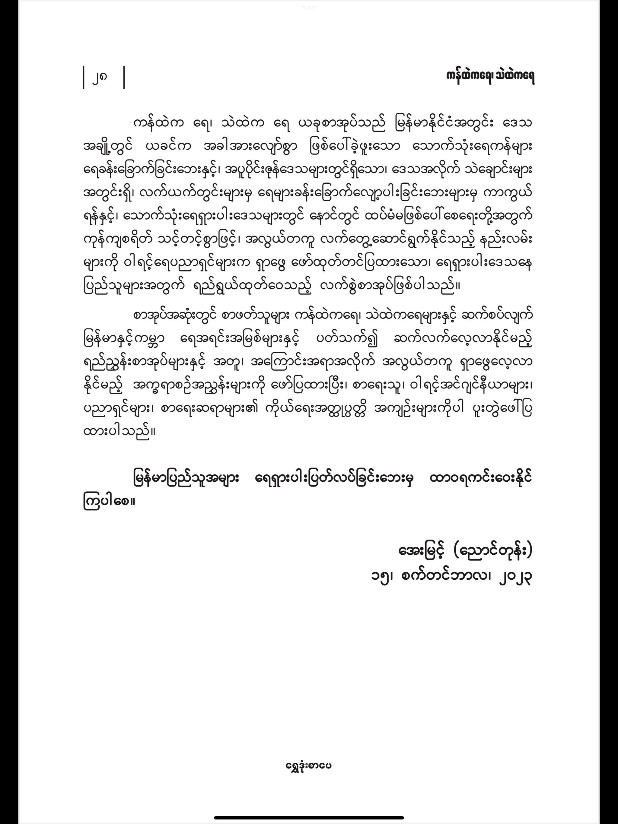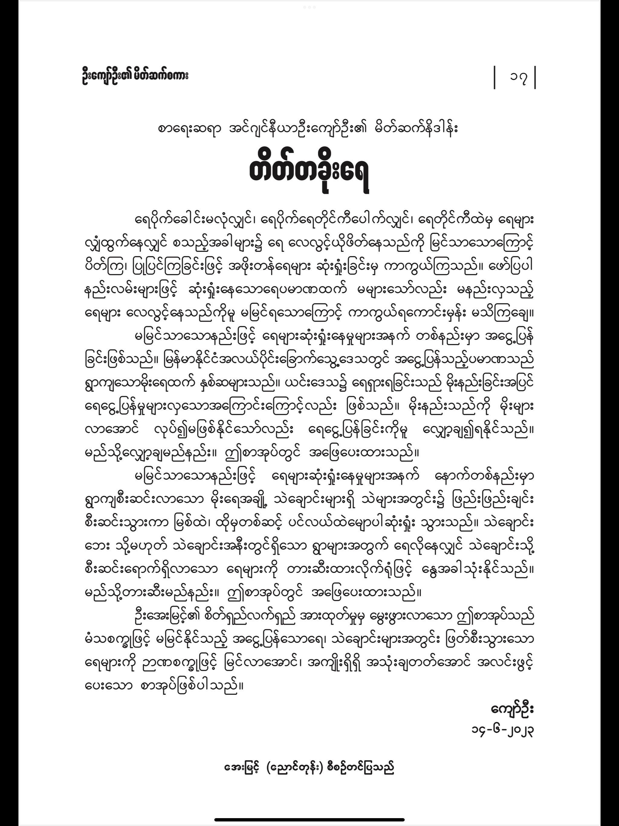 25 Nov 202325 Nov 2023 uamyint ကန်ထဲကရေ၊ သဲထဲကရေ စာအုပ် စီစဉ်တင်ပြသူ၏ စာအုပ် ဖွဲ့စည်း တည် ဆောက်ပုံ အကြောင်း စကားချပ် Click to share on Facebook (Opens in new window) Facebook Click to share on X (Opens in new window) X Click to share on LinkedIn (Opens in new window) LinkedIn Click to share on Telegram (Opens in new window) Telegram More Click to share on Tumblr (Opens in new window) Tumblr Like Loading... Related