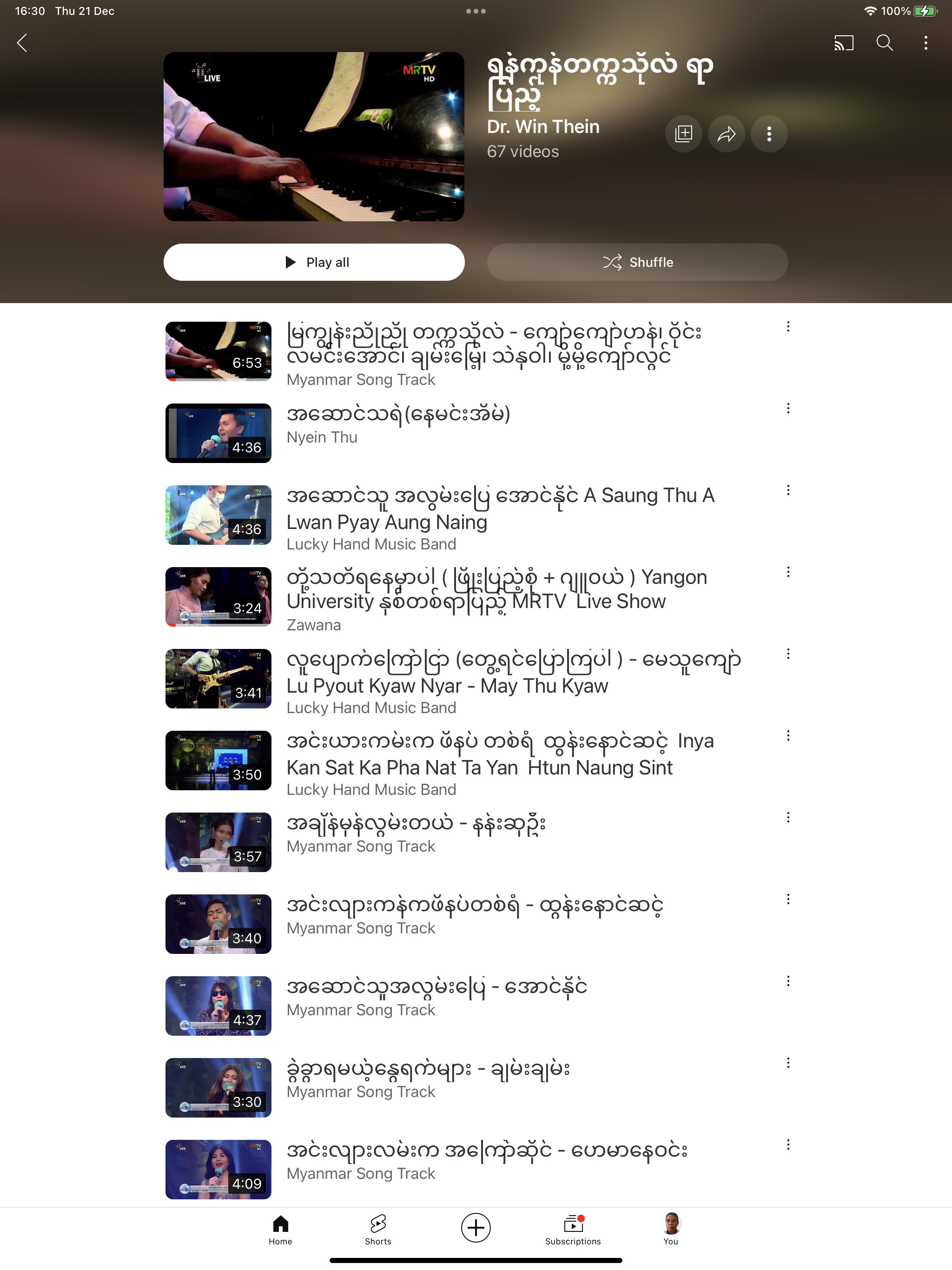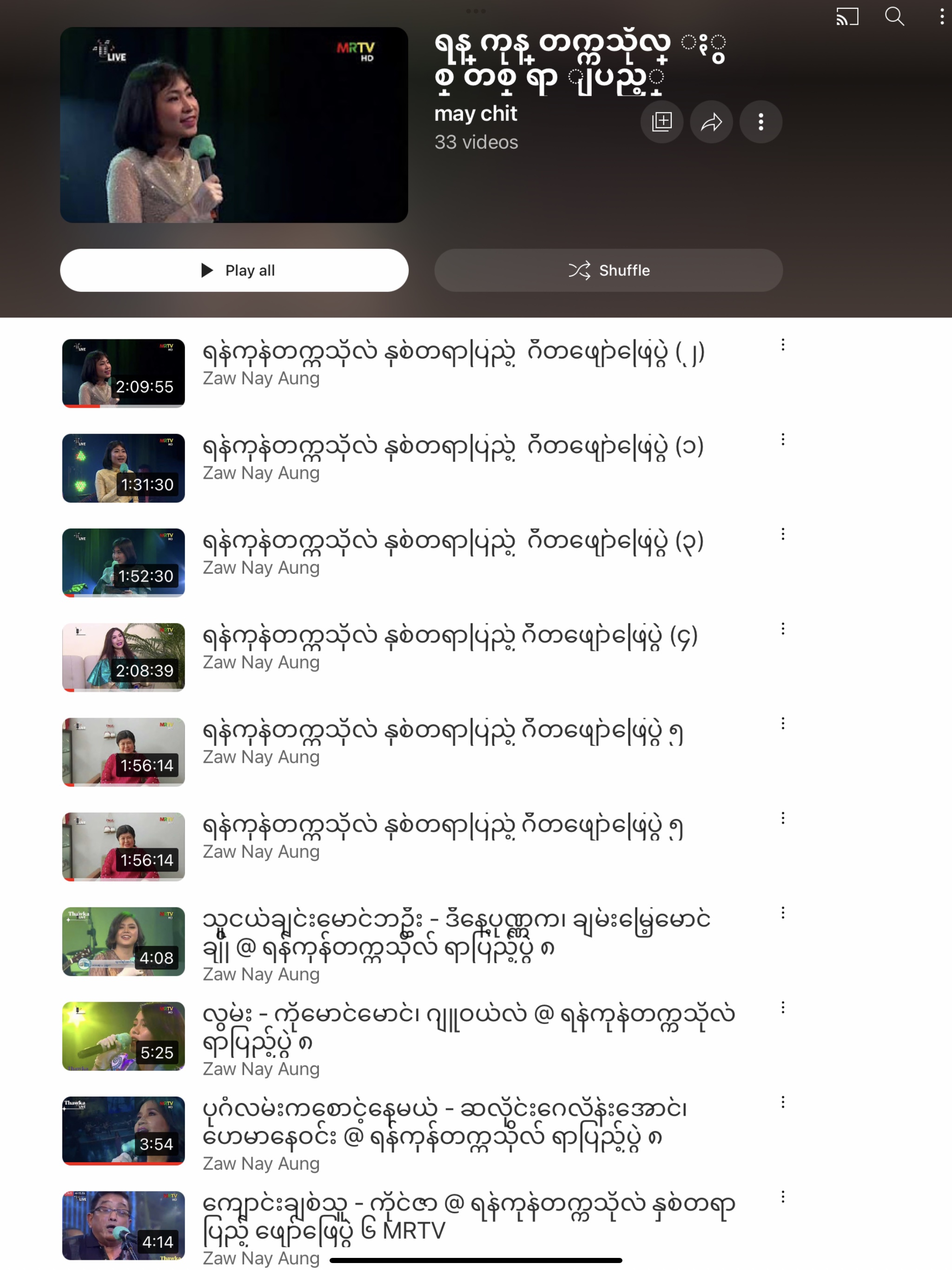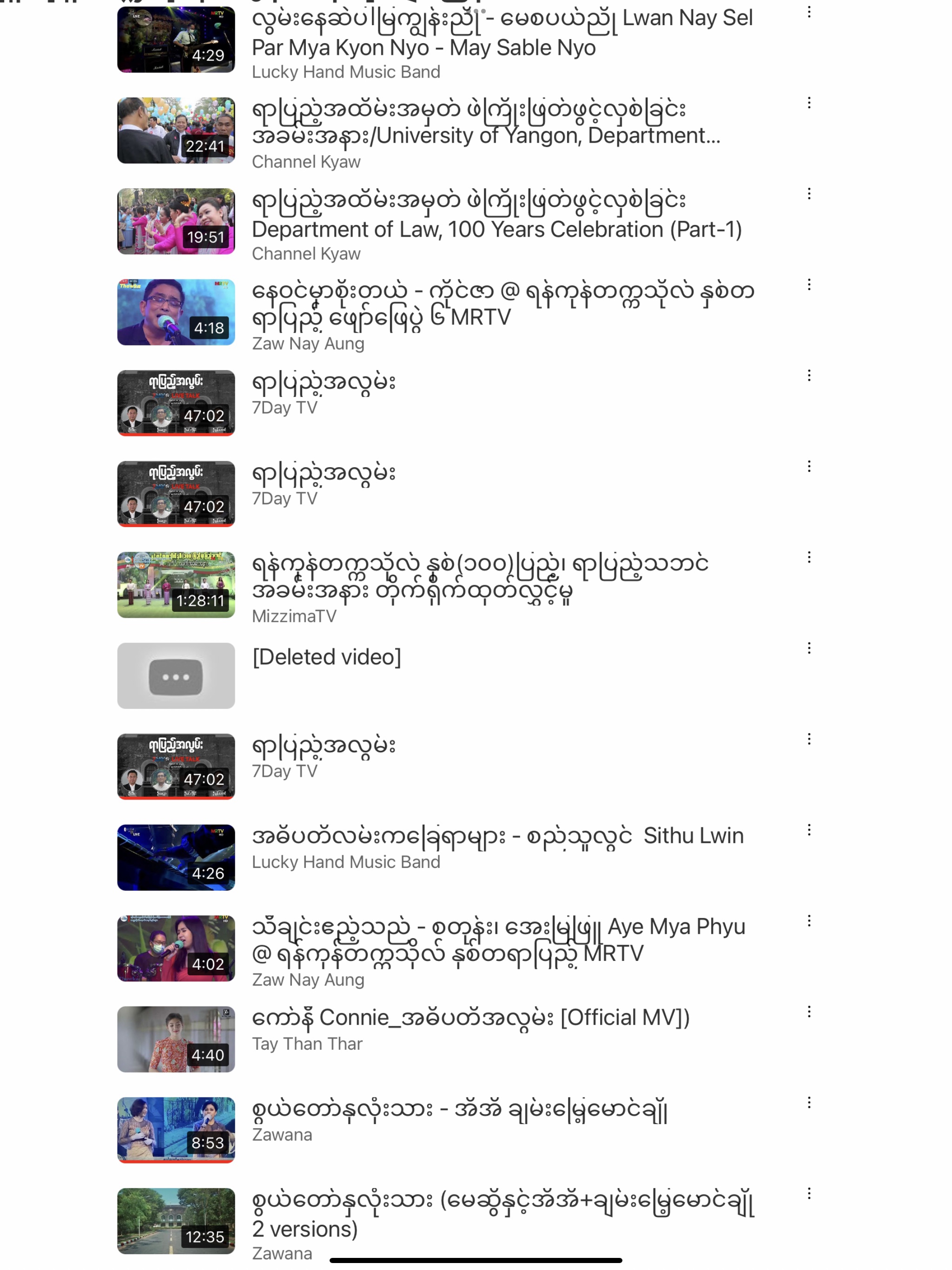 ၉ ။ ရန်ကုန်တက္ကသိုလ် နှစ် တစ်ရာပြည့် ဂီတ ဖျော် ဖြေပွဲ များ . 33 videos