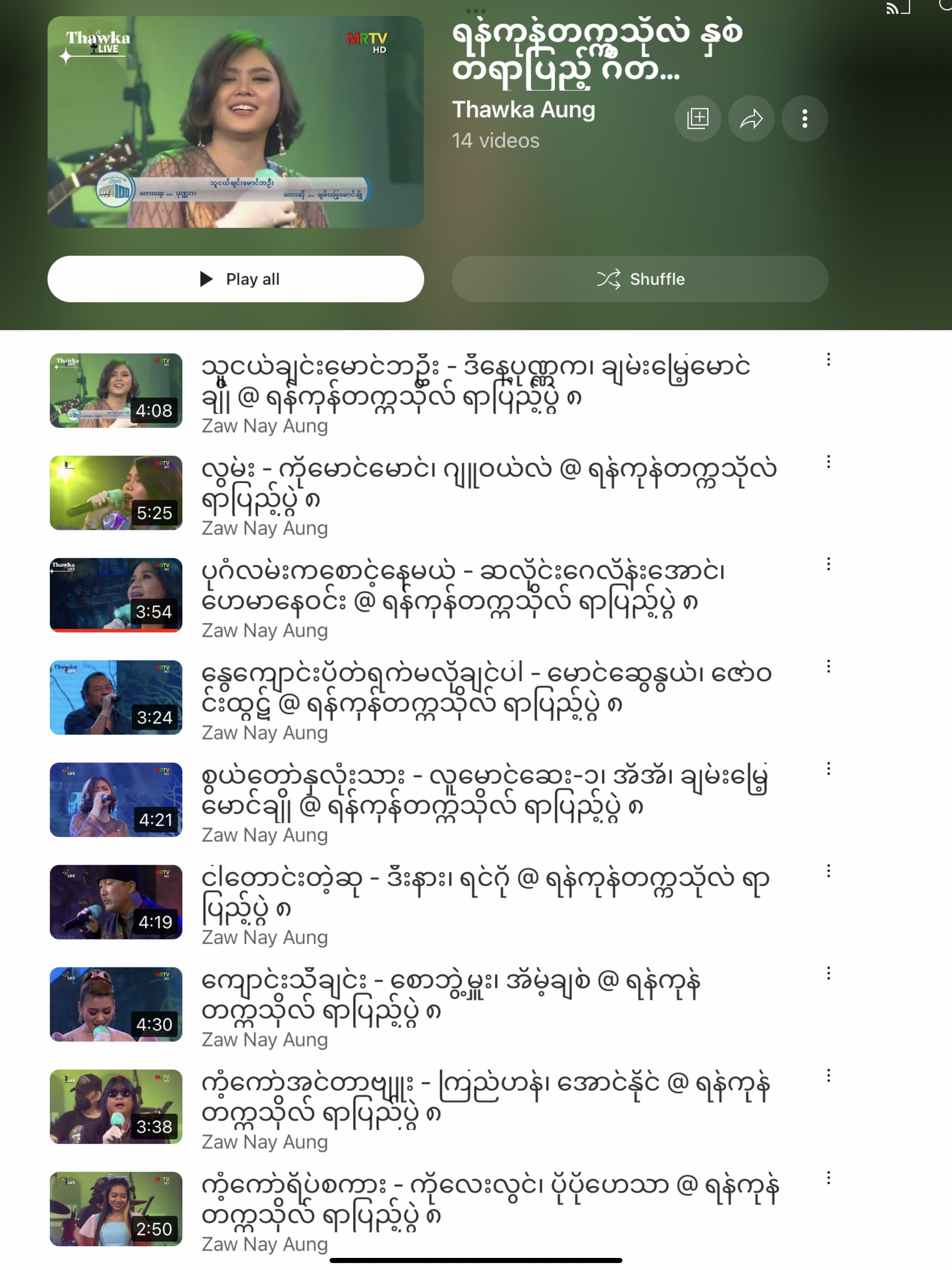 ၈ ။ ရန်ကုန်တက္ကသိုလ် နှစ် တစ်ရာပြည့် ဂီတ ဖျော် ဖြေပွဲ ( ပွဲစဉ် ) 14 videos