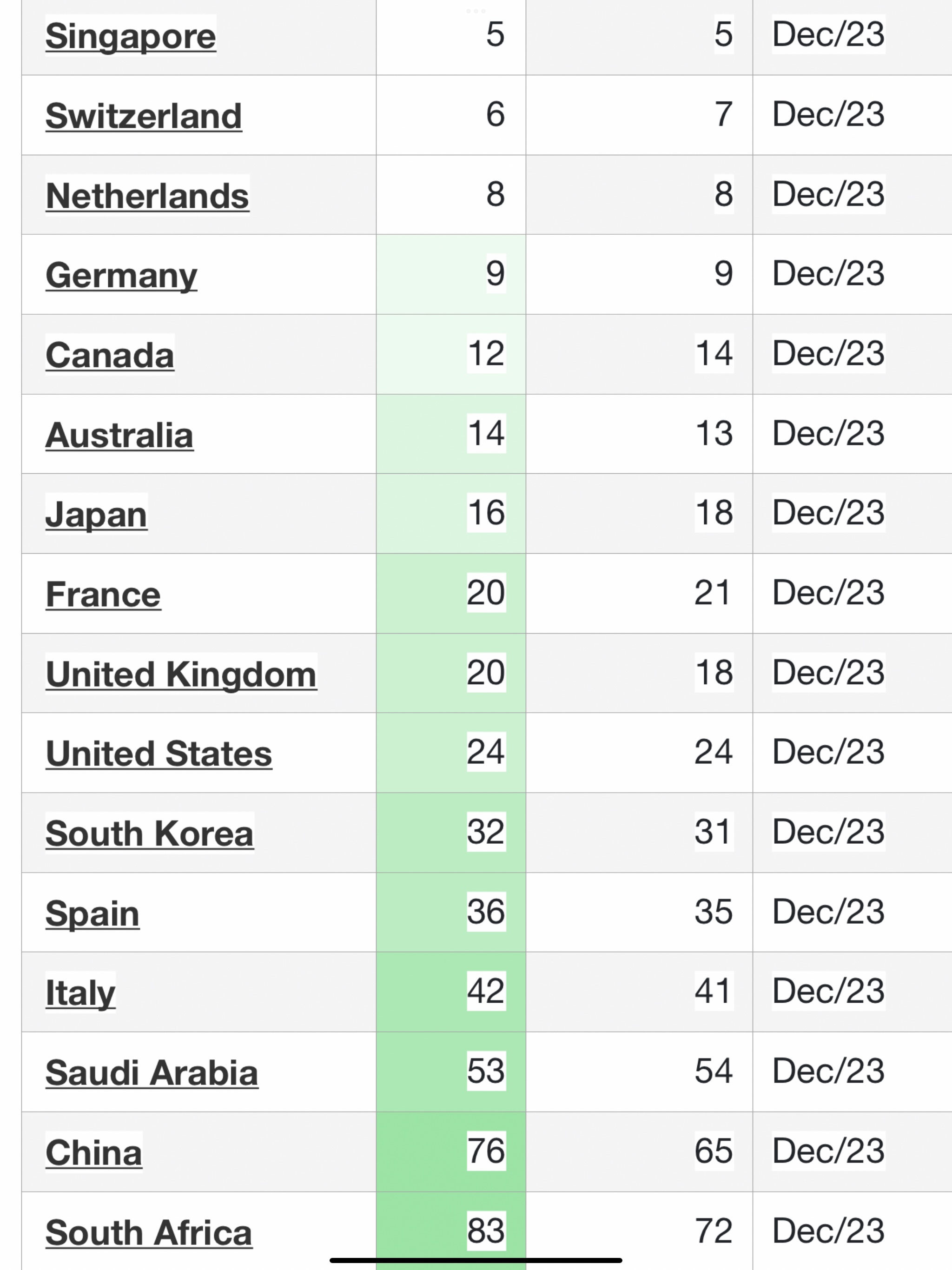 စင်ကာပူနိုင်ငံက ထိပ်ဆုံးမှာ အဆင့် ၅ နေရာမှာ