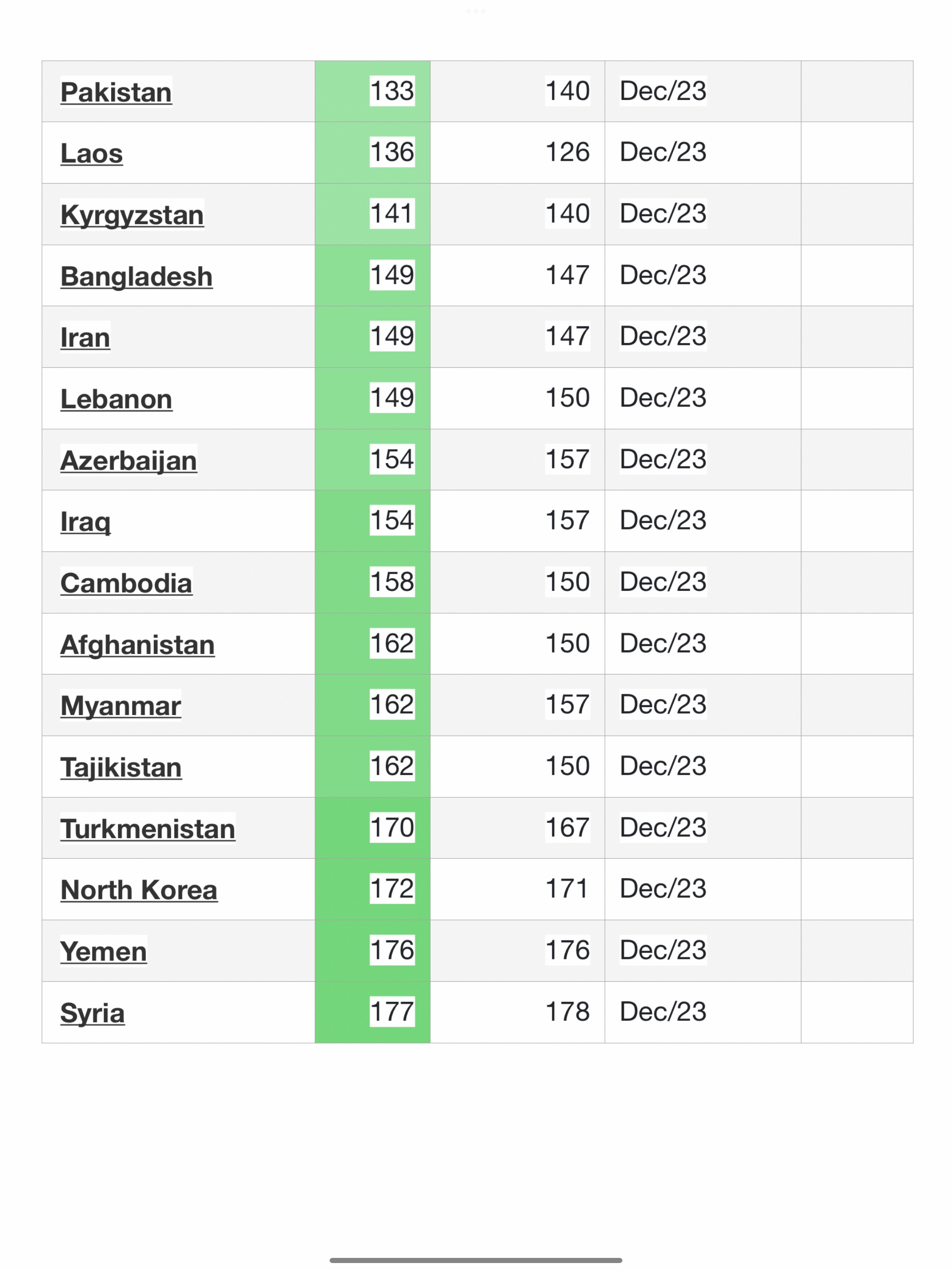 ကမ္ဘာ့နိုင်ငံပေါင်း ၁၈၀ အနက်