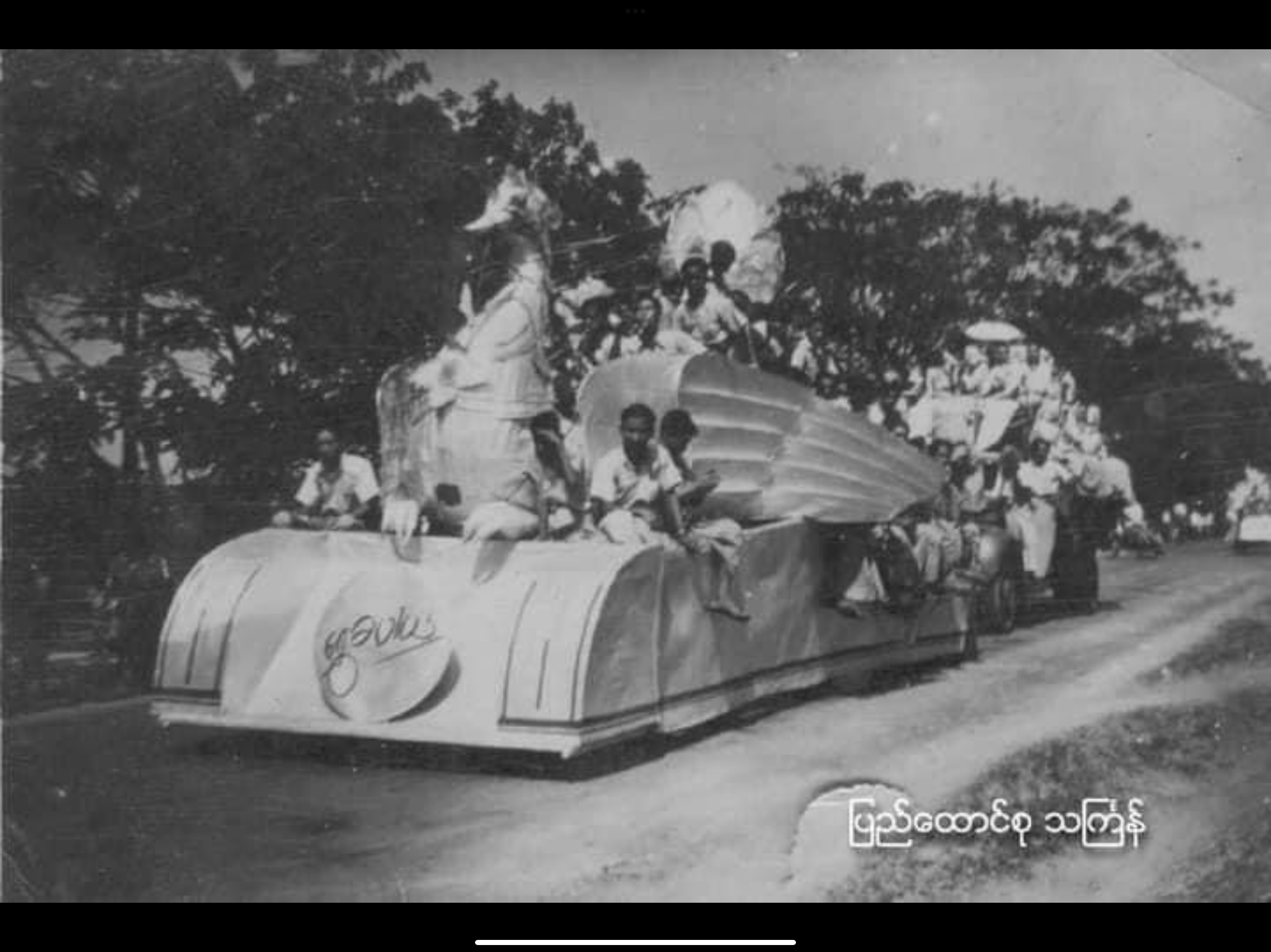 ၁၉၃၀ ဝန်းကျင်။ ။ အလှပြယာဉ်များကို အပြိုင်အဆိုင်ပြင်ဆင်ကြပြီး မိမိတို့ အဖွဲ့အလိုက် သင်္ကေတ