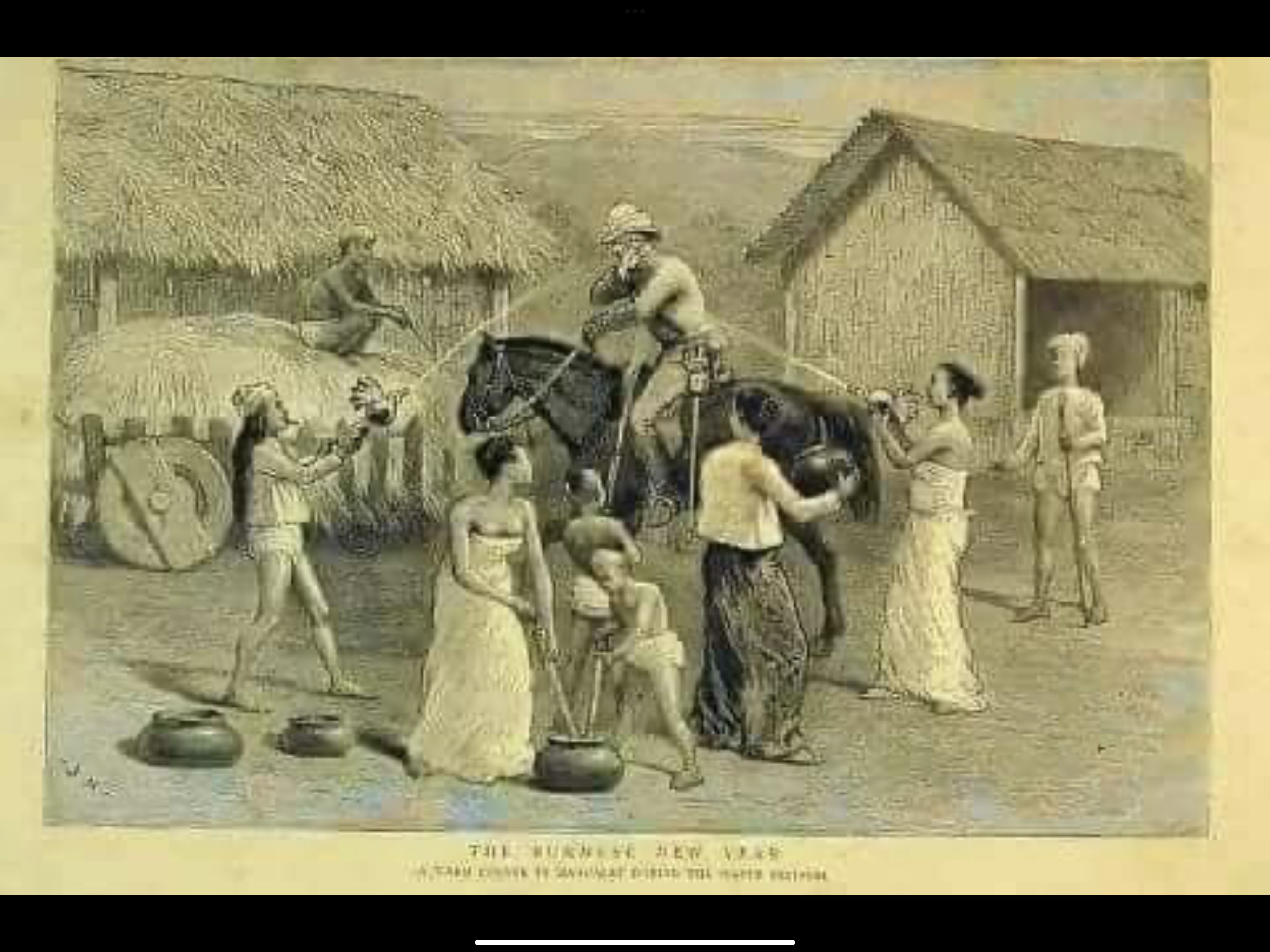 🌼🌼🌼🌼🌼🌼🌼🌼🌼🌼🌼🌼🌼🌼 ( ၁၈၈၂ခုနှစ်တွင်ပုံနှိပ်ထုတ်ဝေသော ဆာဂျော့စကော့ (မြန်မာအမည် -ရွှေရ်ိုး)ရေးသားသည့် မြန်မာ့ရိုးရာနှစ်သစ်ကူး အတာသင်္ကြန်ပွဲတော်အကြောင်းကို Burma စာအုပ်မှ ကောက်နှုတ်ဖော်ပြပါသည်။) မြန်မာတို့၏ ပျော်ရွှင်စရာအကောင်းဆုံးနှစ်သစ်ကူးပွဲတော်ကို အင်္ဂလိပ်လူမျိုးများအပါအဝင် မည်သည့်လူမျိုးမဆို မေ့လျော့မထားနိုင်အောင် ပျော်ရွှင်နှစ်သက်စရာပွဲတော်အဖြစ် တစ်သက်တာထူးခြားမှတ်သားစရာကောင်းလှပေသည်။နှစ်စဉ် မြန်မာတို့၏ ပထမဆုံးလ