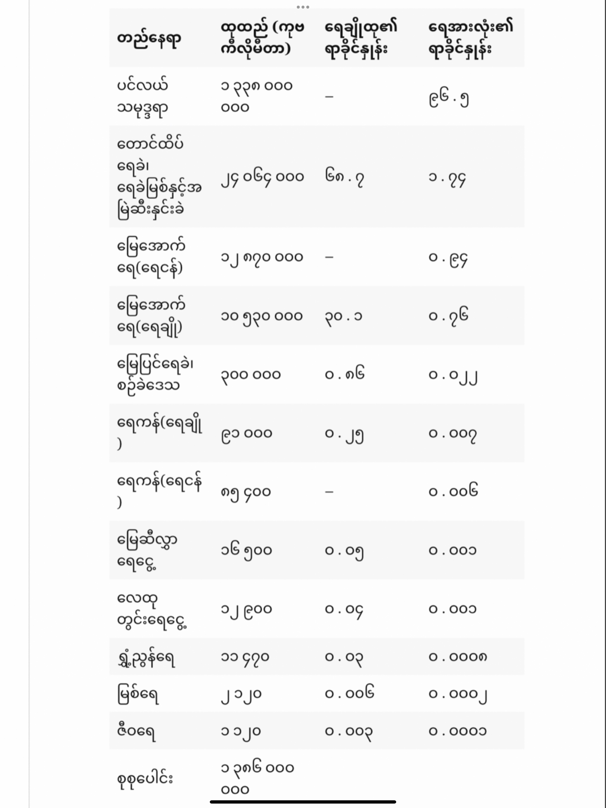 ဇယား ( ၁ ) ကမ္ဘာပေါ်ရှိရေများပျံ့နှံ့တည်ရှိပုံ