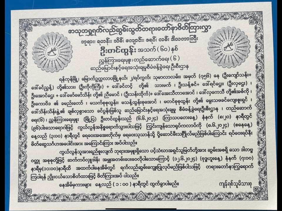 ( ၆ ၊၆ ၊ ၂၀၂၄ ) နေ့တွင် ဘဝတစ်ပါးပြောင်းသွားခဲ့သူ