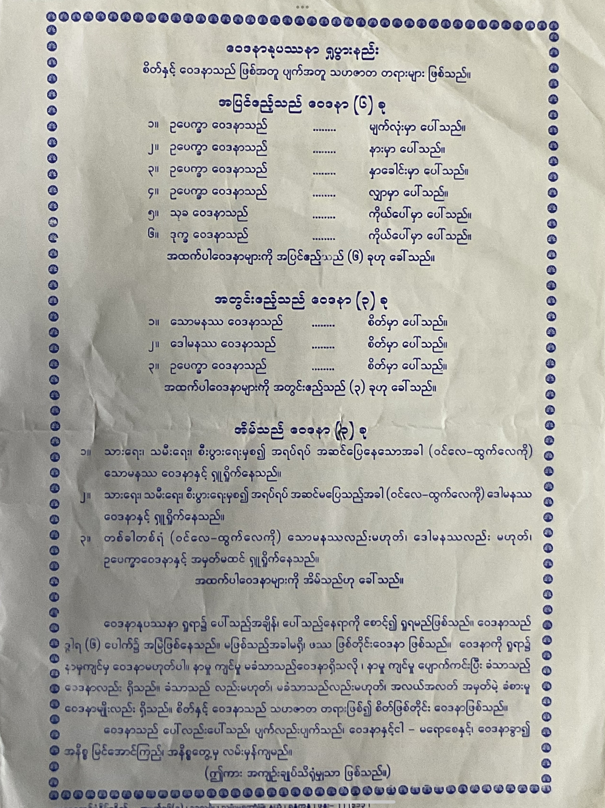 ရက် မသီတဲ့ ဖိတ်စာ နှင့် သေနည်းပြင်ဆင်ခြင်း ။