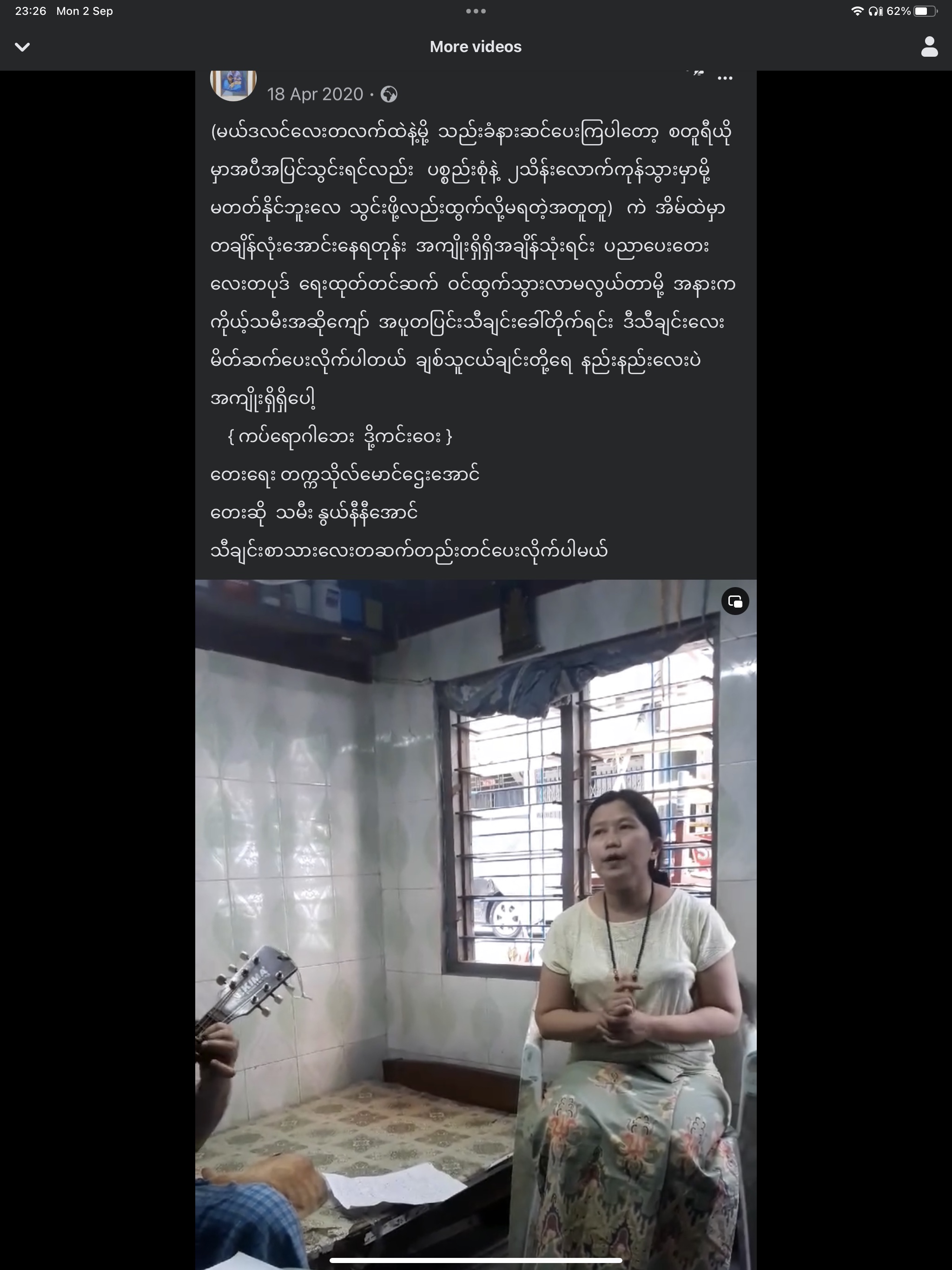 (မယ်ဒလင်လေးတလက်ထဲနဲ့မို့ သည်းခံနားဆင်ပေးကြပါတော့ စတူရီယိုမှာအပီအပြင်သွင်းရင်လည်း ပစ္စည်းစုံနဲ့ ၂သိန်းလောက်ကုန်သွားမှာမို့ မတတ်နိုင်ဘူးလေ သွင်းဖို့လည်းထွက်လို့မရတဲ့အတူတူ) ကဲ အိမ်ထဲမှာတချိန်လုံးအောင်းနေရတုန်း အကျိုးရှိရှိအချိန်သုံးရင်း ပညာပေးတေးလေးတပုဒ် ရေးထုတ်တင်ဆက် ဝင်ထွက်သွားလာမလွယ်တာမို့ အနားကကိုယ့်သမီးအဆိုကျော် အပူတပြင်းသီချင်းခေါ်တိုက်ရင်း ဒီသီချင်းလေး မိတ်ဆက်ပေးလိုက်ပါတယ် ချစ်သူငယ်ချင်းတို့ရေ နည်းနည်းလေးပဲအကျိုးရှိရှိပေါ့