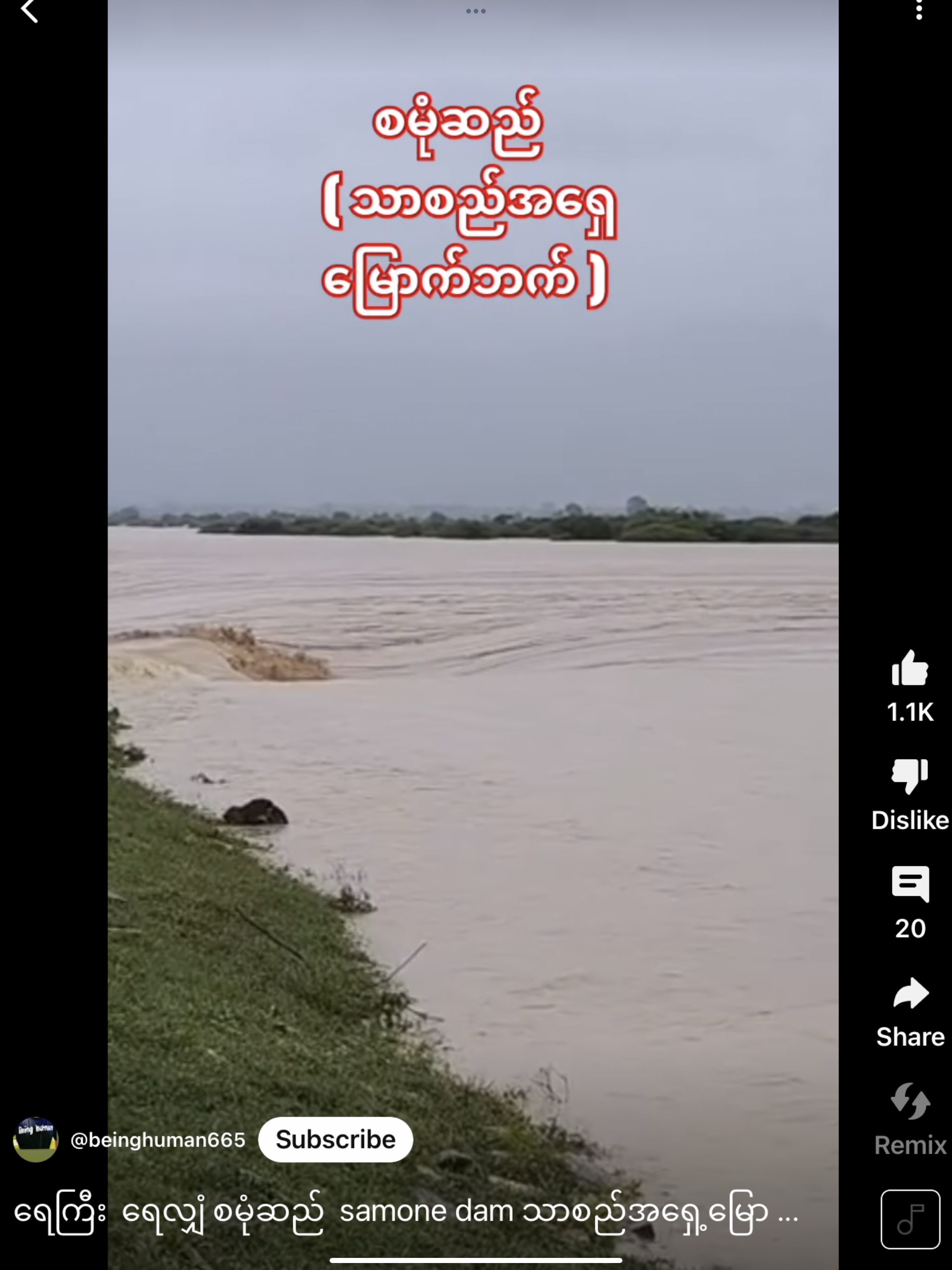 ၁၂ -၉-၂၀၂၄ နေပြည်တော် ရမည်းသင်း ၊မိတ္ထီလာ ၊မိတ္ထီလာ နဲ့ ကျောက်ဆည် ခရီုင် တွေ ရေဘေးကြုံနေရပြီး လူ ၁၀ ဦးသေဆုံး ။ ဝမိးတွင်း မြို့နယ် စမုံဆည် ? ကင်းတားဆည်