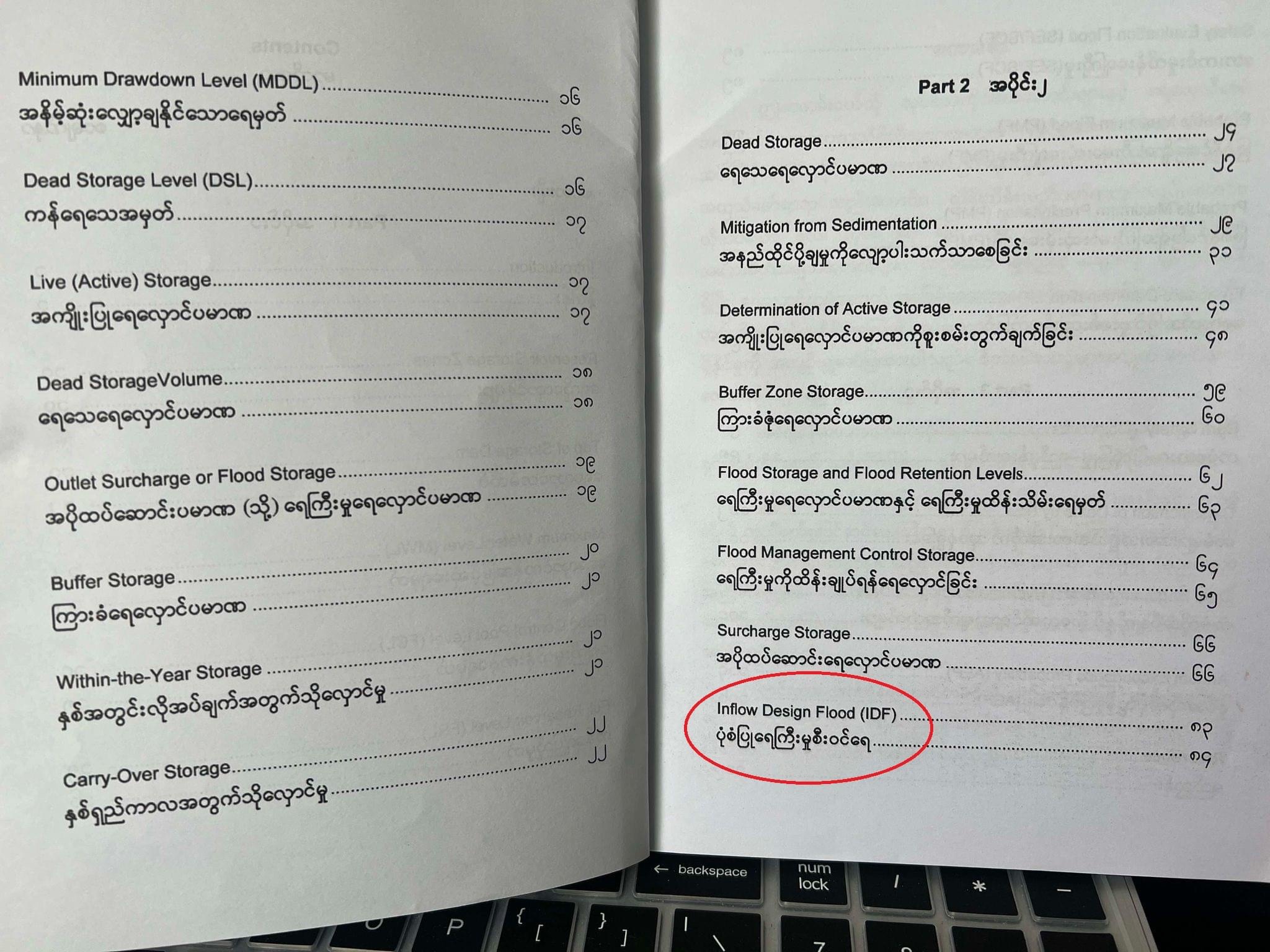 ဆရာ ၂၀၂၀ ခုနှစ်ကရေးသားသည့် “ ရေလှောင်ကန်၊အင်ဂျင်နီယာပညာရပ်နှင့် တမံပုံစံပြု၊ ရေကြီးမှု” စာအုပ် တွင်ပါဝင်သော အပိုင်း၊၃ ပိုင်း၊ အခန်းများ၊စာအုပ်ပုံတို့ကိုဓါတ်ပုံရိုက်တင်ပြထားပါသည်။ဤစာ အုပ်ကိုဖတ်ရုခြင်းဖြင့် ဆက်နွယ်ရာဆက်နွယ်ကြောင်းများကိုပြည်သူအများနားလည်း၊ကြောင်းကျိုးဆင် ကျင်သုံးသပ်နိုင် မည်ဟုယူဆပါသည်။