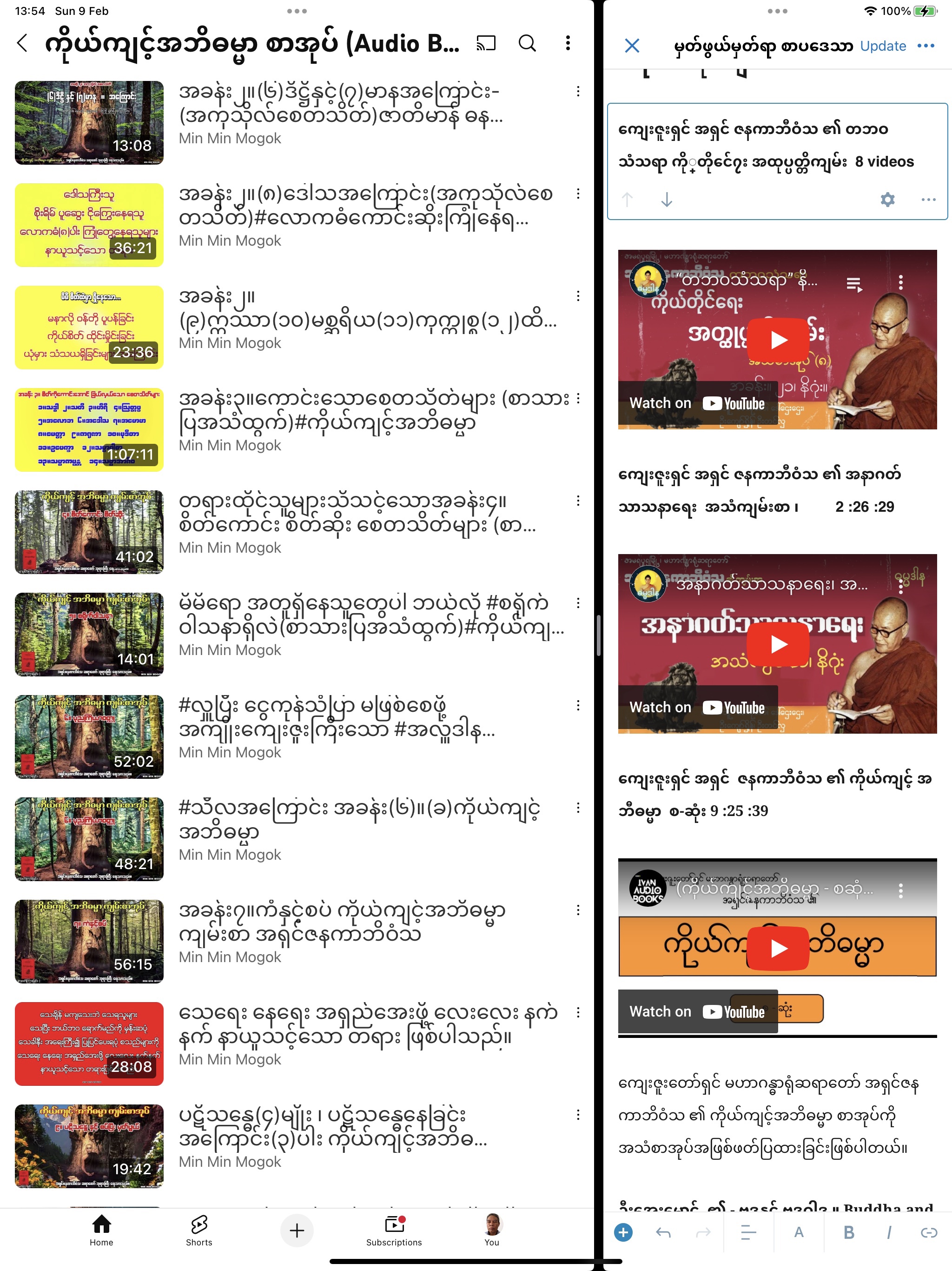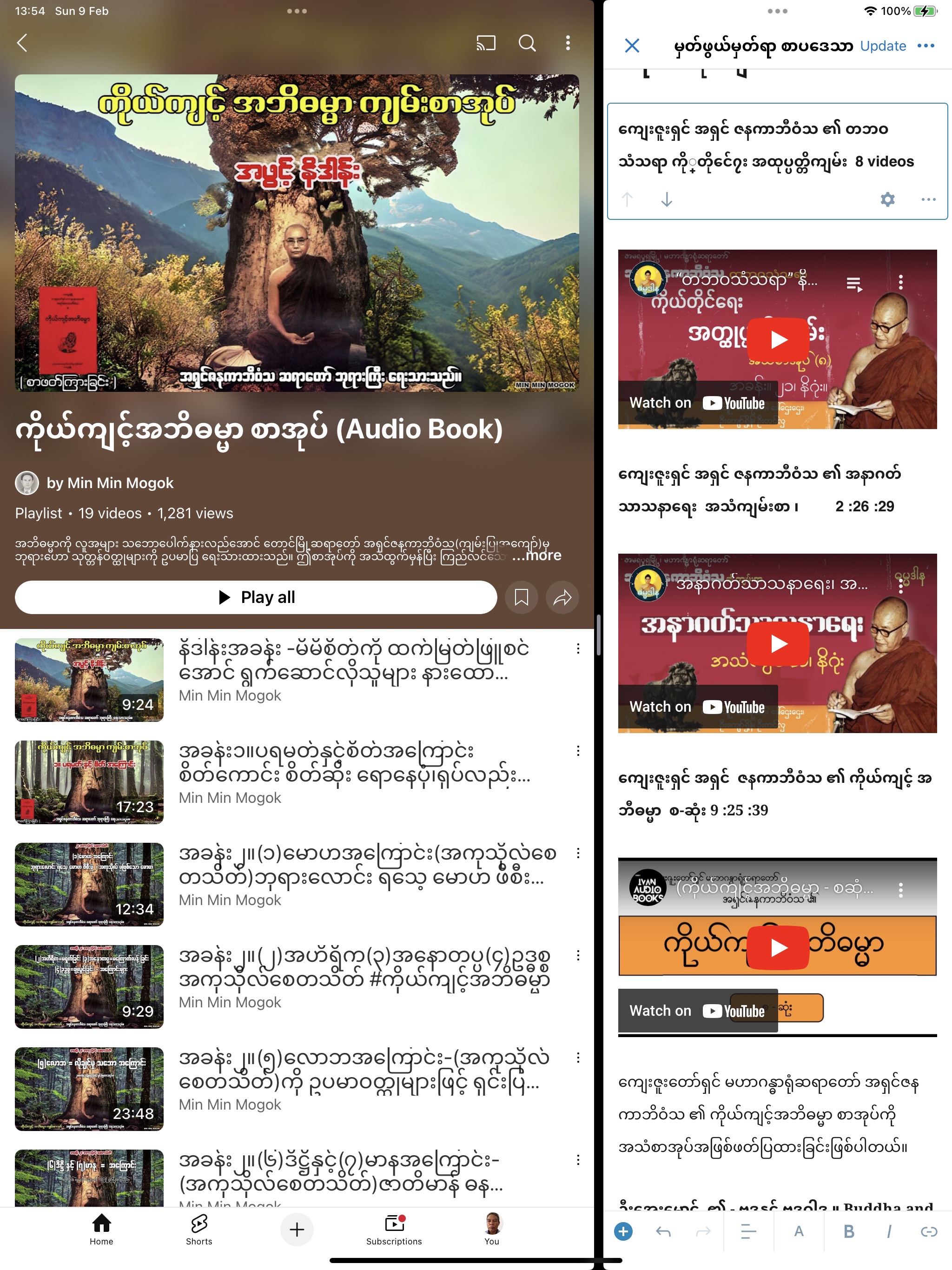 ကျေးဇူးတော်ရှင် မဟာဂန္ဓာရုံဆရာတော် အရှင်ဇနကာဘိဝံသ ၏ ကိုယ်ကျင့်အဘိဓမ္မာ စာအုပ်ကို အသံစာအုပ်အဖြစ်ဖတ်ပြထားခြင်းဖြစ်ပါတယ်။ အခန်းအလိုက် 19 videos