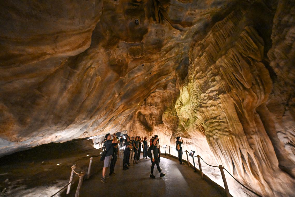 Explore the main cavern while learning about speleothems – mineral deposits formed from dripping water – before taking a photo at the oculus. ST PHOTO: LIM YAOHUI
