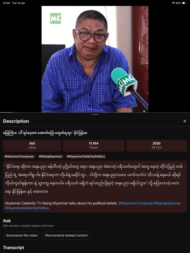 @MyanmarCelebrity Update: Naing Myanmar comments on the popularity of his “Gabar Ma Kyay Buu” song during the People’s Revolution . #MyanmarComposer #NaingMyanmar #နိုင်မြန်မာ