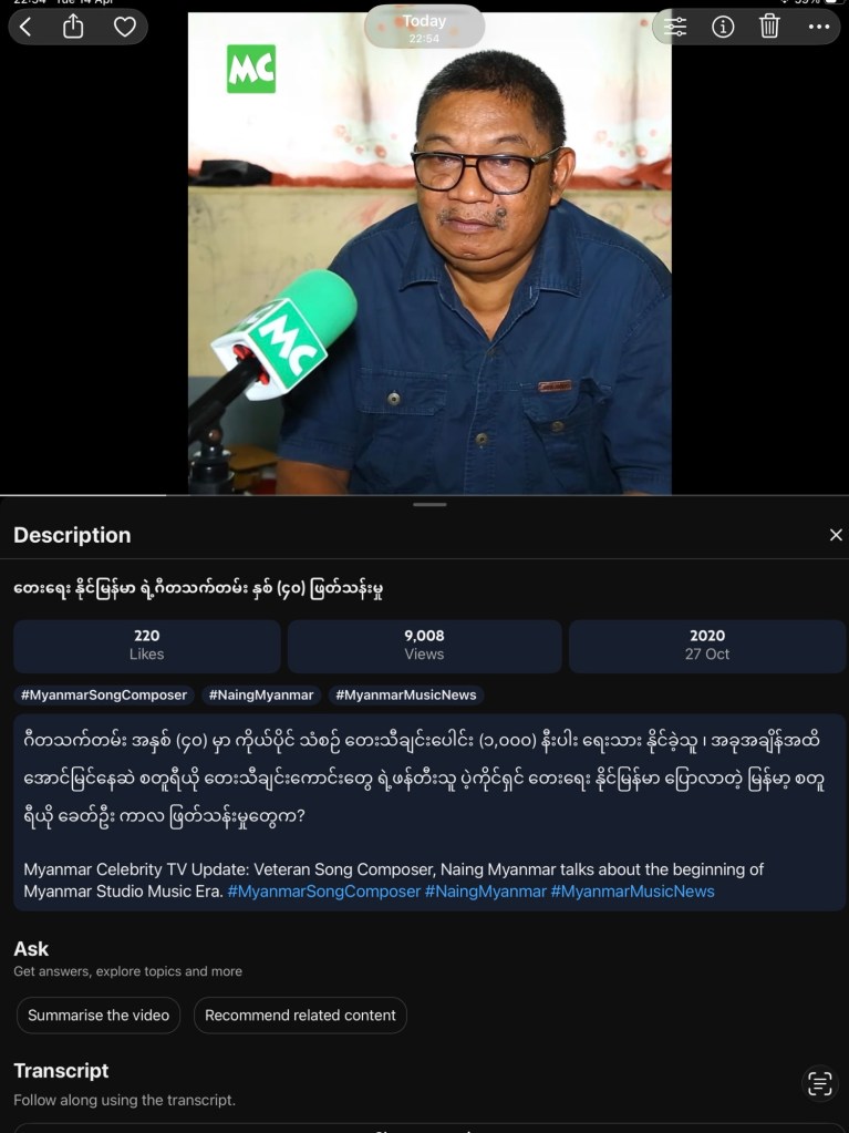 Myanmar Celebrity TV Update: Song Composer, Naing Myanmar talks about his 9 years creations on “Warso” romantic song. #NaingMyanmar #Warso #Wahso #WarsoSong #MyanmarSongComposer