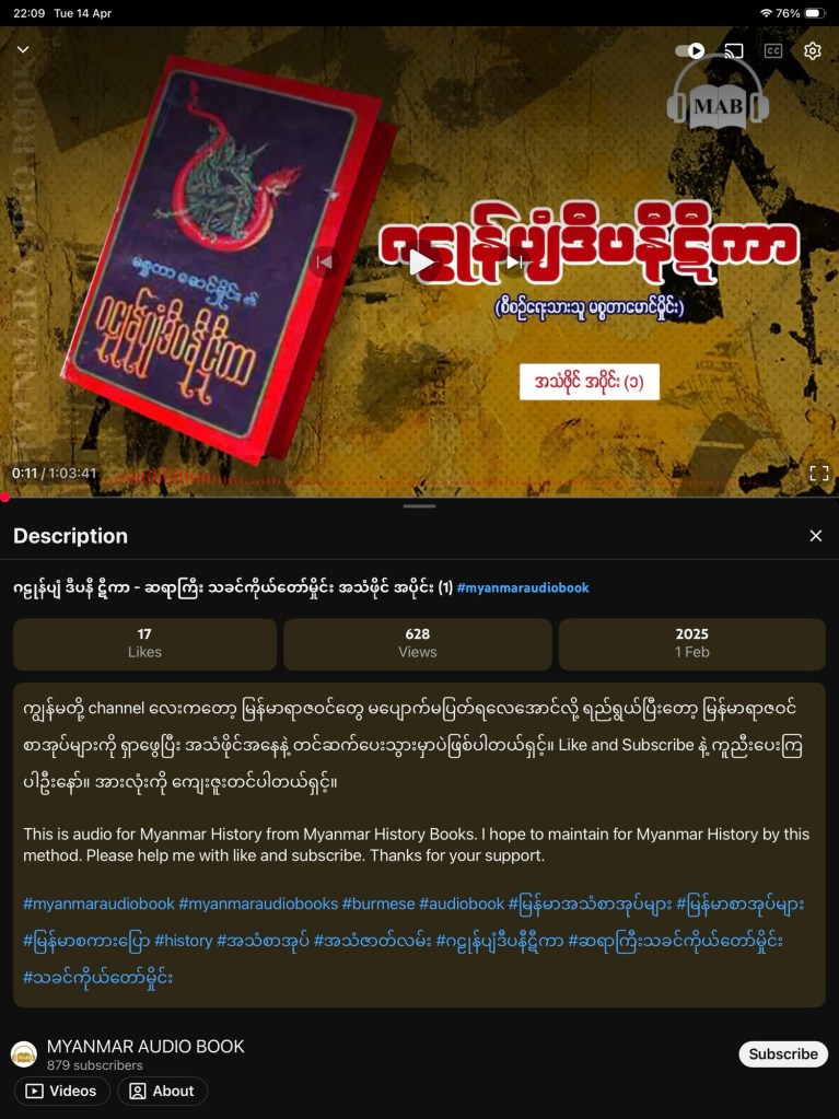 studio recording မဟုတ်သည့်အတွက် လိုအပ်ချက်များရှိလျှင် ချစ်ခင်စိတ်ဖြင့် အားပေးကြပါလို့ ၊ နေ့စဉ်ရသစုံစာပေလေးတွေနားစဉ်နိုင်ဖို့ @serchannel2023 Channel လေးကို Subscribe & Share ပေးကြပါအုံးနော် ၊မိတ်ဆွေများ၏ အားပေးမှုများသည် မိမိအတွက် ခွန်အားဖြစ်စေပါသည်။အသံစာအုပ်များအား Play List တွင်ဝင်ရောက်၍ အစီအစဉ်လိုက် နားဆင်နိုင်ပါသည်။VPN လေးဖွင့်ပြီး နားစဉ်ခြင်းဖြင့် ကူညီနိုင်ပါသည်။အားပေးကြတဲ့ တစ်ဦးတစ်ယောက်ချင်းစီတိုင်းကို ကျေးဇူးတင်ရှိပါသည်။မူရင်းစာအုပ်အား ဖတ်ရှုပေးပါခင်ဗျာ။