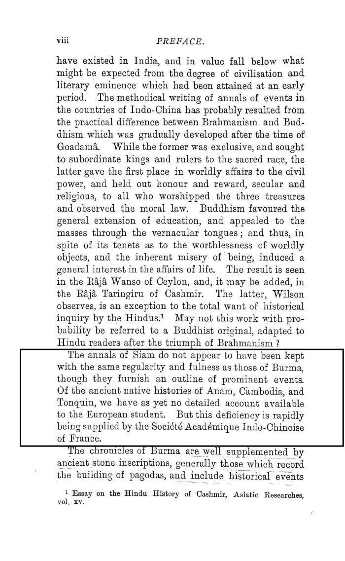 “ဆယမ်(ထိုင်း)မှတ်တမ်းများသည် မြန်မာမှတ်တမ်းများကဲ့သို့ ပြေပြစ်၊ ပြည့်စုံခြင်းမရှိပုံ။ ကမ္ဘောဒီယား၊ဗီယက်နမ် တို့တွင်လည်း မြန်မာကဲ့သို့ မှတ်တမ်းမရှိပုံများကို” ဆက်လက်၍ မှတ်ချက်ပြုထားသည်။